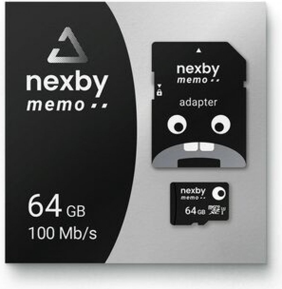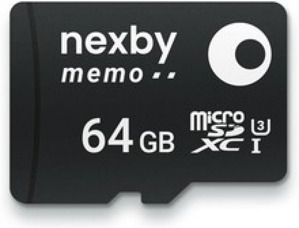 Nexby micro SDXC o paměti 64 GB pro všechna multimediální zařízení, mobilní telefony, nebo počítače. Micro SDXC je vysoce kvalitní paměťová karta vybavena vysokou rychlostí čtení 100 MB/s a zápisu 35 MB/s. Karta je klasifikována úrovní UHS-I, stupeň 3 (U3), rychlostní třída 10.