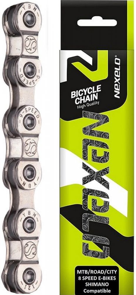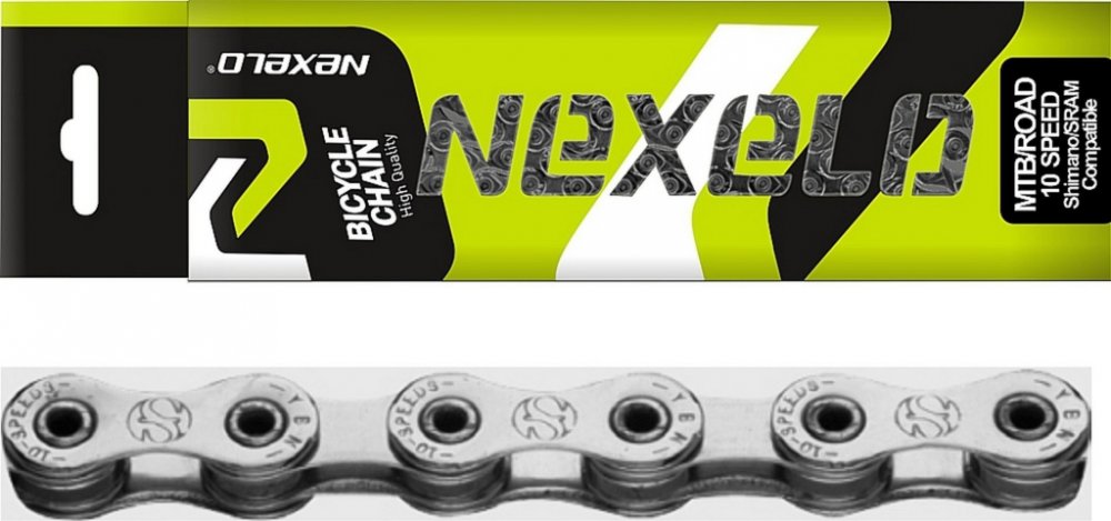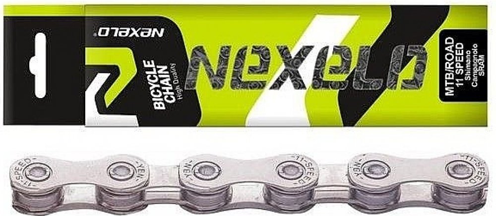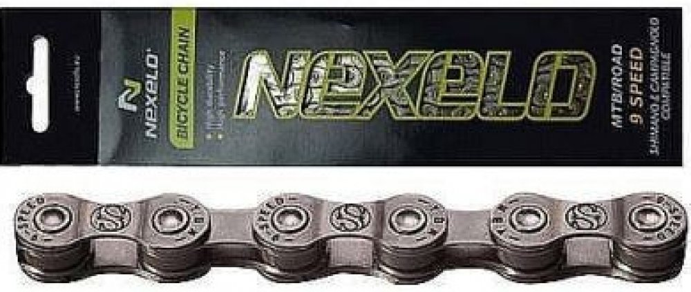 Výborný poměr výkon/cena. Řetěz NEXELO, určený pro 9 kolečko,šedý.