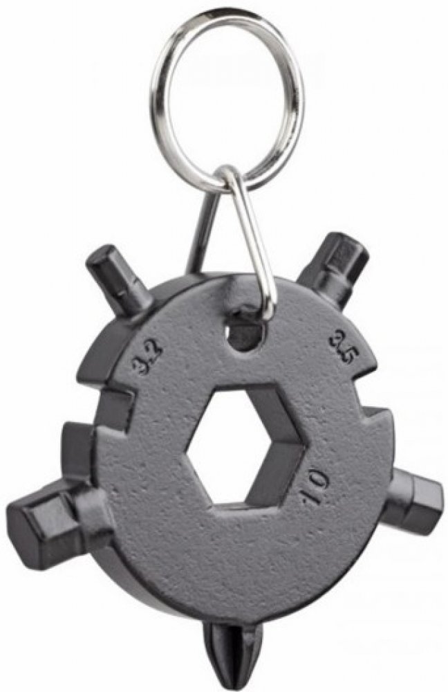 Nářadí 8 v 1 - přívěšek, ocel 3,4,5,6 mm imbusy, 3.2mm and 3.5mm centrklíč, 10mm nástrčný klíč a křížový šroubovák. Hmotnost 27 g