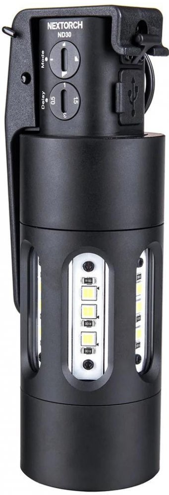 NEXTORCH ND30 je vyhledávaný taktický nástroj, který poskytuje možnost odvedení pozornosti bez regulačních omezení tradičních oslepujících granátů. Tento inovativní systém kombinuje 11 000 lumenů dezorientujícího stroboskopu s výstupním zvukem 130 dB a poskytuje tedy rychlé nasazení, maximální účinek a spolehlivost v každé situaci profesionálům, na výcvik i domácí obranu.