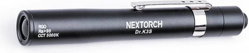 Svítilna Nextorch Dr. K3S je speciálně navržena pro potřeby lékařů a poskytuje lékaři praktické a nejpřesnější diagnostické osvětlení. Svítilna má stylový design a kompaktní konstrukci, díky které můžete svítilnu umístit do kapsy. Index vykreslování barev (Ra) světelného zdroje produktu je větší než 90 a teplota barvy (CCT) se pohybuje okolo 5000K. Fotobiologická úroveň bezpečnosti je RG0, kdy tedy nehrozí poškození očí. Mimo jiné nabízí svítilna design profesionálního optického zařízení a rovnoměrný paprsek bez tmavých míst. Provozní doba svítilny je 55 hodin. Nabíjí se pomocí 1 ks baterei AAA. Tato svítilna je nezbytnou součástí vybavení každého zdravotnického pracovníka ale též je profesionálním a užitečným lékařským nástrojem v domácnosti například pro kontrolu těla.