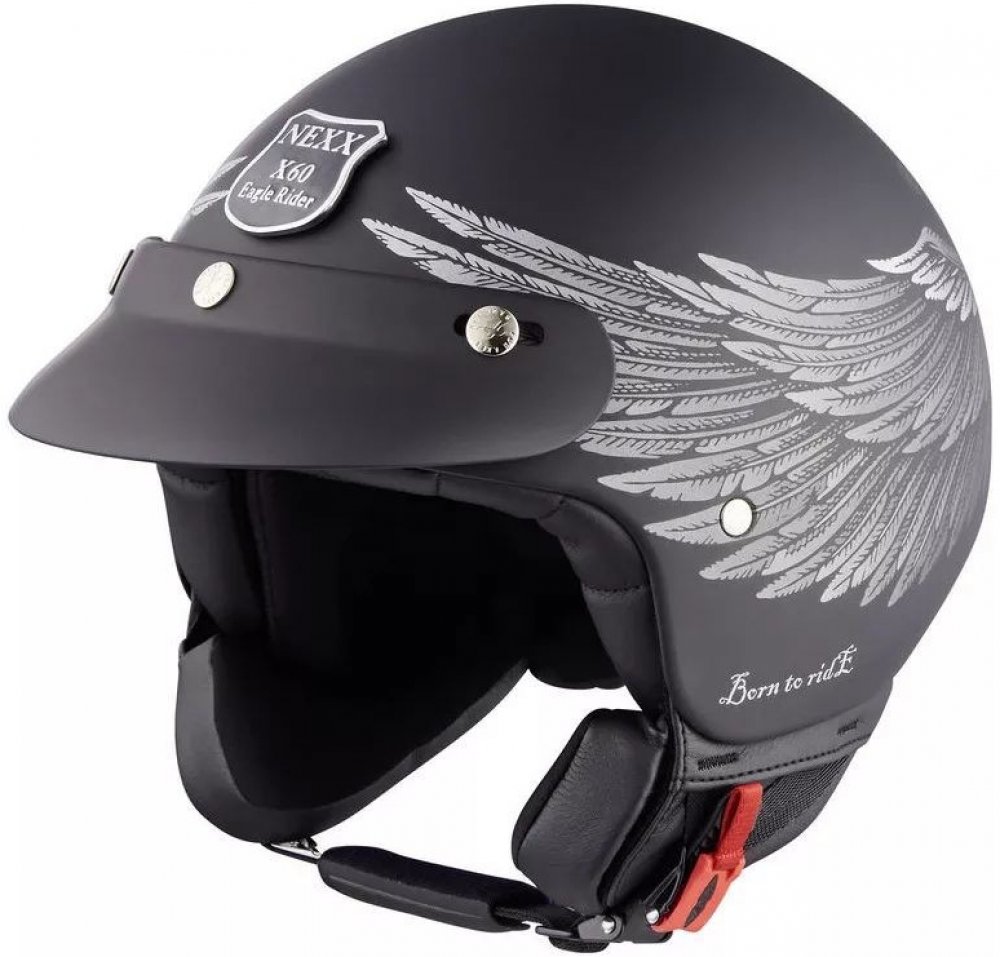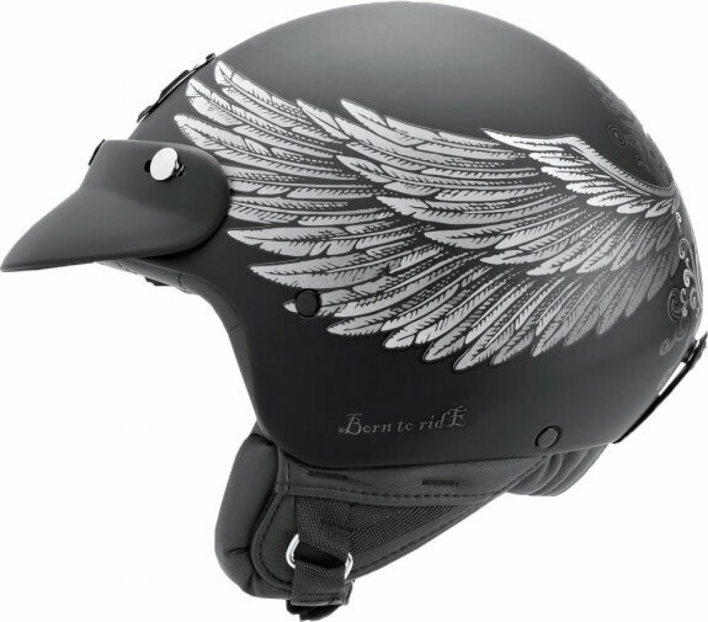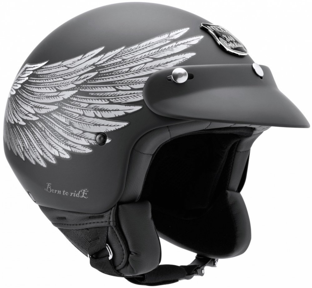 Otevřená helma se štítkem.ATR skořepina ( nový zdokonalený materiál, který přestože je lehčí, zachovává stejnou odolnost jako polykarbonát).