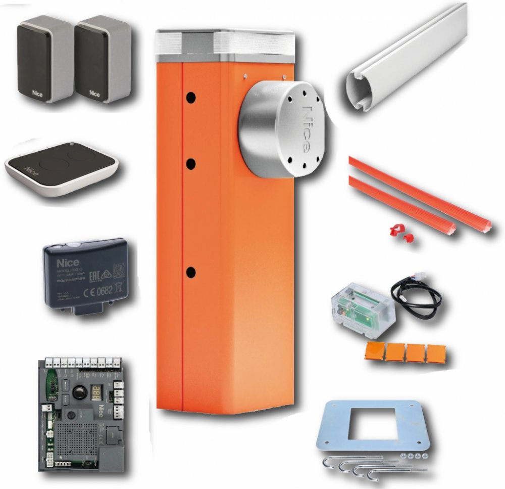 1x závoru M5BAR s morem 24Vdc a s řídící jednotkou BCU1 (XBA3R10) 1x hliníkového ramene XBA14 1x sada ochranných gumových lišt XBA13 1x výstražný maják XBA7 1x dálkový ovladač ON2E 1x přijímač OXIBD 1pár fotobuněk EPMB 1x příslušenství pro montáž (kotevní deska atd.)