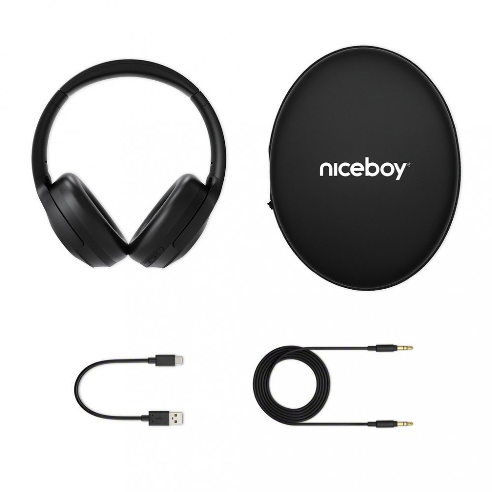 bezdrátová 2.5 mW 32 Ohm 60 h stylový univerzální 20000 Hz 20 Hz Niceboy 95 dB/mW přes hlavu (náhlavní) 3,5 mm Jack 200 g 40 mm USB-C