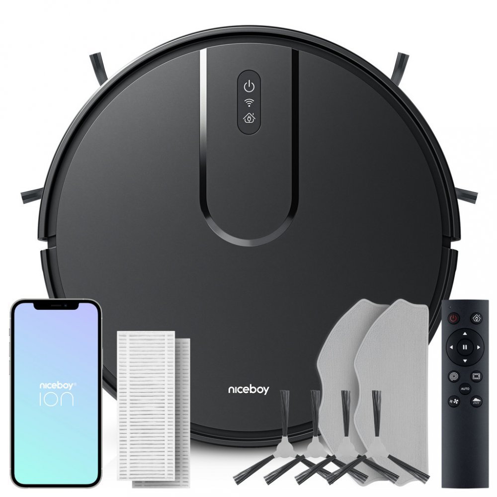 Niceboy černé 2v1 s běžnou údržbou vysoká ochrana (HEPA H13+) 2 kg 7.8 cm všechny druhy podlah pro domácnosti se zvířaty nejlepší na tvrdé podlahy bezdotykové 1.5 cm gyroskopické pro střední byty (50–90 m²) vhodné pro běžné domácnosti se základní navigací vhodný pro více pater Li-Ion 5200 mAh 130 min 4.5 h 65 dB 15 W vhodný na běžný denní úklid