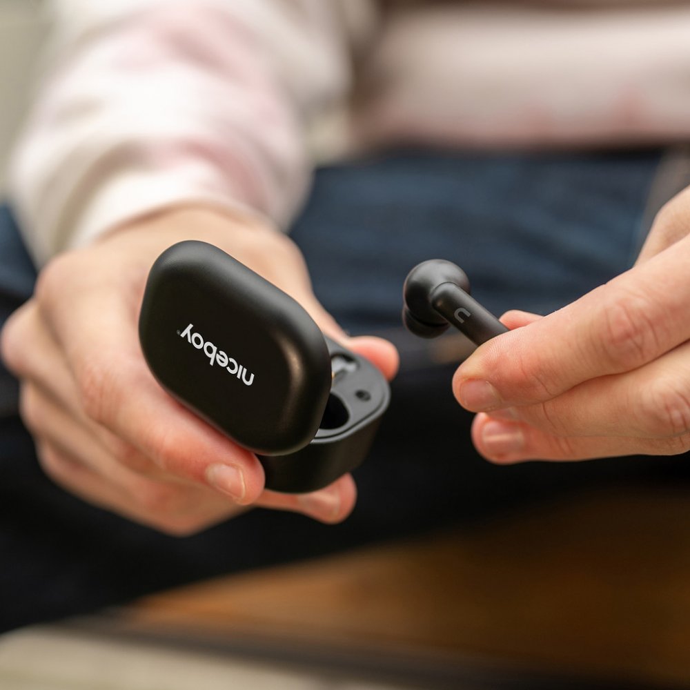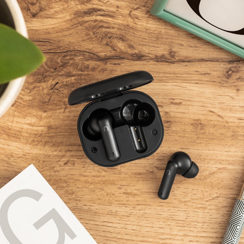 Bezdrátová sluchátka Se sluchátky HIVE Pins se nemusíte bát, že by vám vypadával zvuk při přehrávání hudby nebo že by se přerušoval telefonní hovor – s Bluetooth 5.0 máte kvalitní přenos zaručený. Ovládání hudby či přijímání hovorů je pohodlné, jelikož ho ovládáte prostými dotyky přímo na sluchátkách. Ta vydrží i pobyt v dešti a se třemi velikostmi nástavců padnou do každého ucha. Dokonalá čistota zvukuPřestože se sluchátka HIVE Pins vejdou do dlaně, o kvalitu zvuku se nemusíte bát - mají silný a čistý zvuk, vycházející z technologie MaxxBass a měničů o velikosti 13 mm. Hovor? Další skladba? Stačí jen dotyk!Nechcete uprostřed běhu zastavovat a lovit v kapse telefon jen proto, abyste přijali hovor? Se sluchátky HIVE Pins se jich stačí dotknout a telefonování může začít. S krytím IPX4 sluchátka navíc odolávají dešti i potu. Stabilita s Bluetooth 5.0Díky bezdrátovému připojení pomocí Bluetooth 5.0 bude přenos hudby ale i vaše telefonní hovory stabilní. Se sluchátky HIVE Pins se vám zkrátka nestane, že by zvuk vypadl. V kapse výdrž od rána do nociSluchátka vydrží hrát až 4 hodiny, ale když si s sebou vezmete nabité pouzdro, máte k dispozici celkem 18 hodin hudby. Jejich nabíjení je pak rychlé a pohodlné díky kabelu s USB-C konektorem. Pohodlné pro každé uchoAť už máte uši velké nebo miniaturní, se třemi velikostmi nástavců vám sluchátka HIVE Pins sednou za všech okolností. Podle svého si tak můžete sluchátka upravit tak, aby byla vaše oblíbená hudba nebo pracovní telefonát bez potíží kvalitně slyšet.