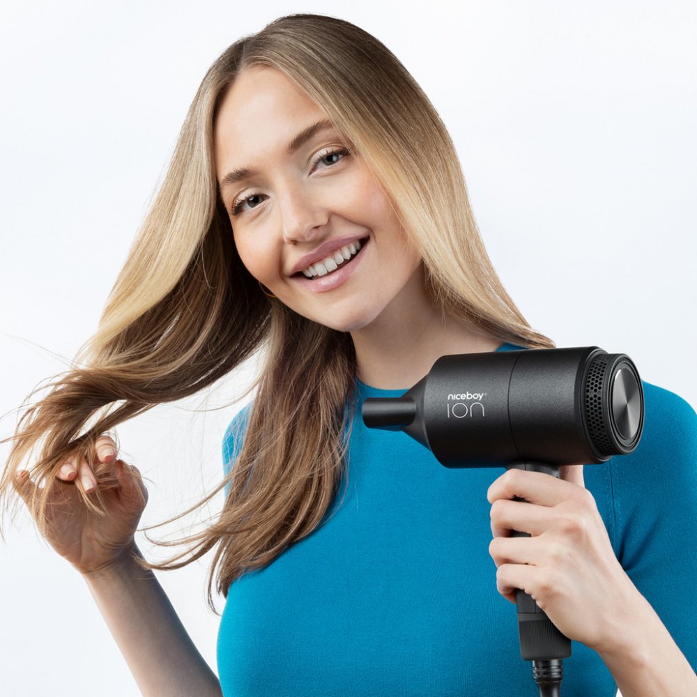 Fén Niceboy ION AirSonic STAR zaručí nejen rychlý styling vlasů, ale napomáhá i jejich dlouhodobé kráse a vitalitě. Výkonný motor o síle 2100 W generuje optimální proudění vzduchu pro rychlé a efektivní sušení vlasů. To znamená nejen úsporu času, ale i mnohem méně vystavování vlasů teplému vzduchu. Klíčovým prvkem je ionizační funkce, která přispívá k vyššímu zdraví a ochraně vlasů. Ionizační funkce totiž produkuje záporně nabité ionty, které nejenže redukují statickou elektřinu ve vlasech, čímž minimalizují krepatění a usnadňují jejich úpravu, ale také zvyšuje odolnost vlasů před vnějším poškozením. To znamená, že vlasy po vysušení zůstávají přirozeně hebké a lesklé.