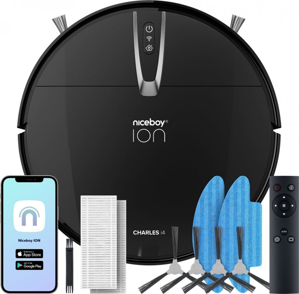 S mobilní aplikací Niceboy ION máte všechny své chytré spotřebiče ION pod palcem. U vysavače si pomocí aplikace snadno naplánujete úklid kdykoliv a odkudkoliv. Vyšlete svého Charlese i4 vysát nebo vytřít na dálku, nastavte si u něj vlastní harmonogram uklízení ve vámi určené časy, a to vše včetně podrobných statistik o průběhu vysávání.