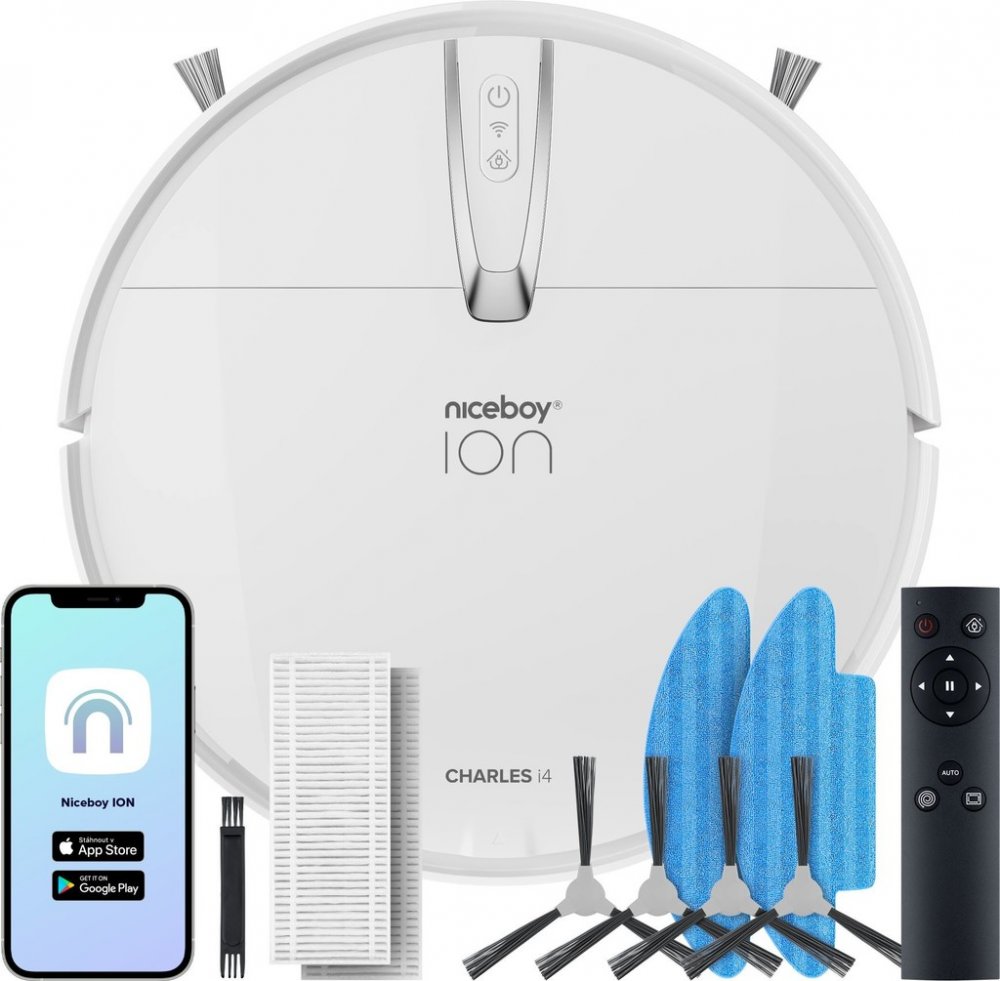 S mobilní aplikací Niceboy ION máte všechny své chytré spotřebiče ION pod palcem. U vysavače si pomocí aplikace snadno naplánujete úklid kdykoliv a odkudkoliv. Vyšlete svého Charlese i4 vysát nebo vytřít na dálku, nastavte si u něj vlastní harmonogram uklízení ve vámi určené časy, a to vše včetně podrobných statistik o průběhu vysávání.