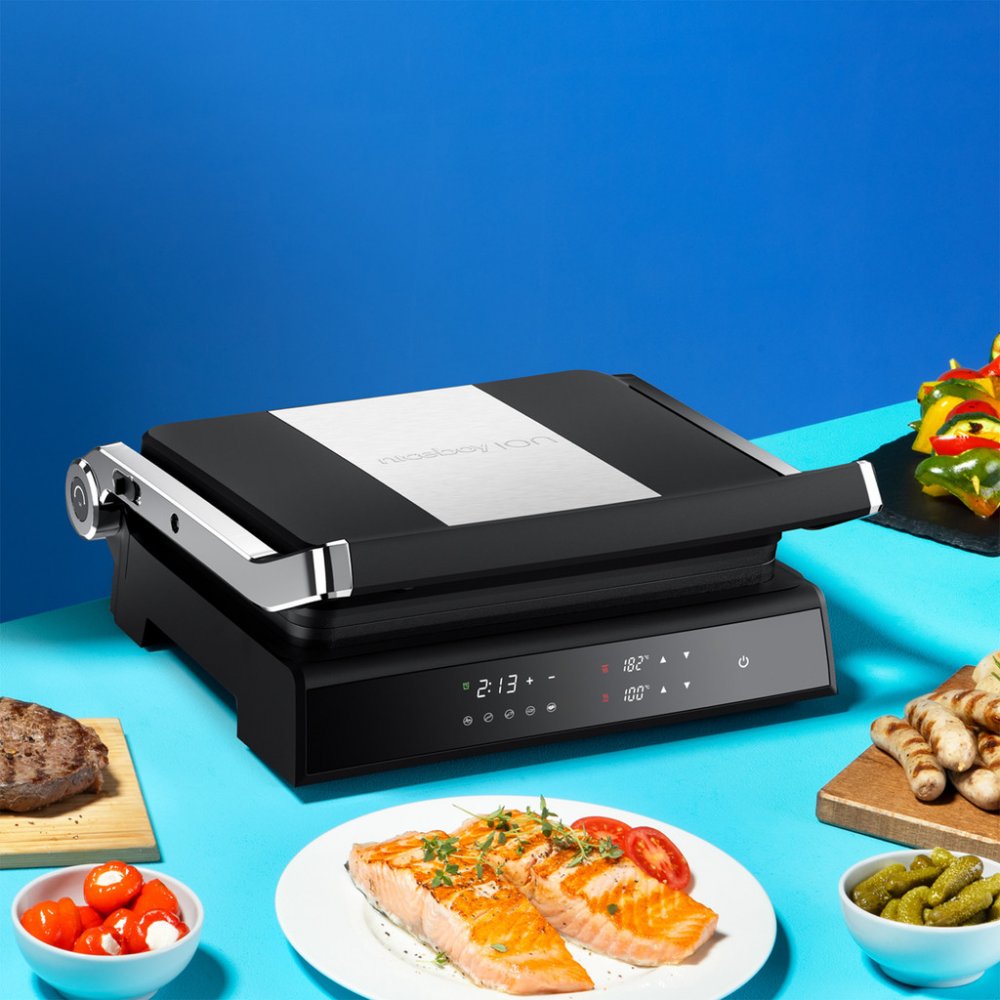 S dvěma velkými grilovacími deskami a možností otevření i na 180°dokážete s Niceboy ION Grillmaster připravit více jídel najednou. Pro každou grilovací desku lze nastavit vlastní teplotu v rozmezí 90 - 230 °C, což umožňuje přípravu různých pokrmů současně.