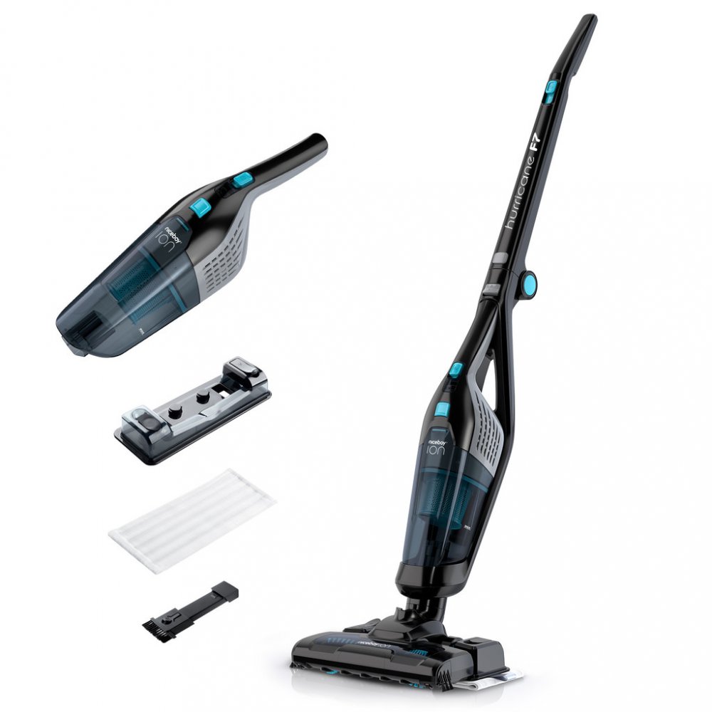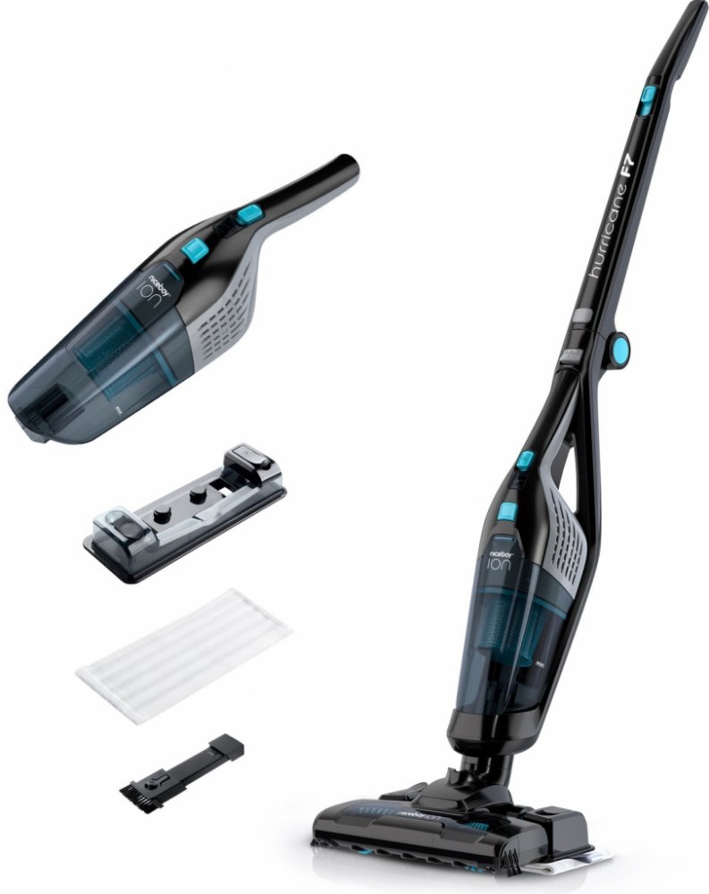 Vysavač Niceboy ION Hurricane F7 nabízí komplexní přístup k úklidu domácnosti. V jednom těle totiž získáváte hned tři přístroje v jednom - tyčový vysavač, ruční vysavač i mop. S mopovací nádržkou o kapacitě 200 ml současně vysajete a vytřete až 50 m2 velké plochy. Ruční vysavač pak přijde vhod, kdykoliv potřebujete rychle vysát nepořádek z jinak obtížně dosažitelných ploch jako například nábytku, kuchyňské linky nebo interiéru auta.