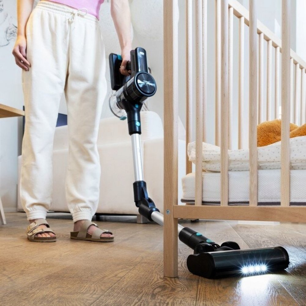 Vysavač Niceboy ION Hurricane F7 je jednoduše skladný díky konstrukci jeho rukojeti, kterou lze sklopit a zalomit. Takto složený vysavač tak umožňuje mnohem snazší uložení, což přijde vhod, zejména pokud nemáte zrovna přebytek úložného prostoru.