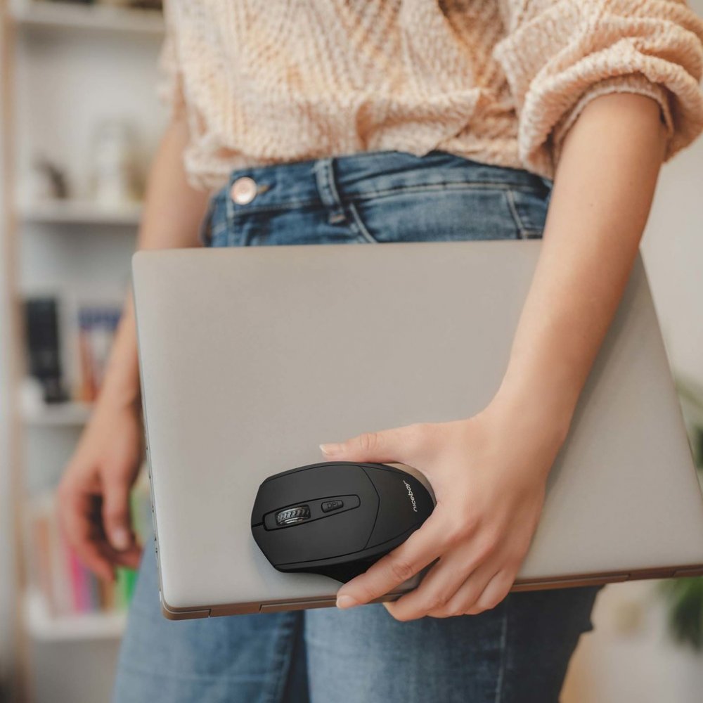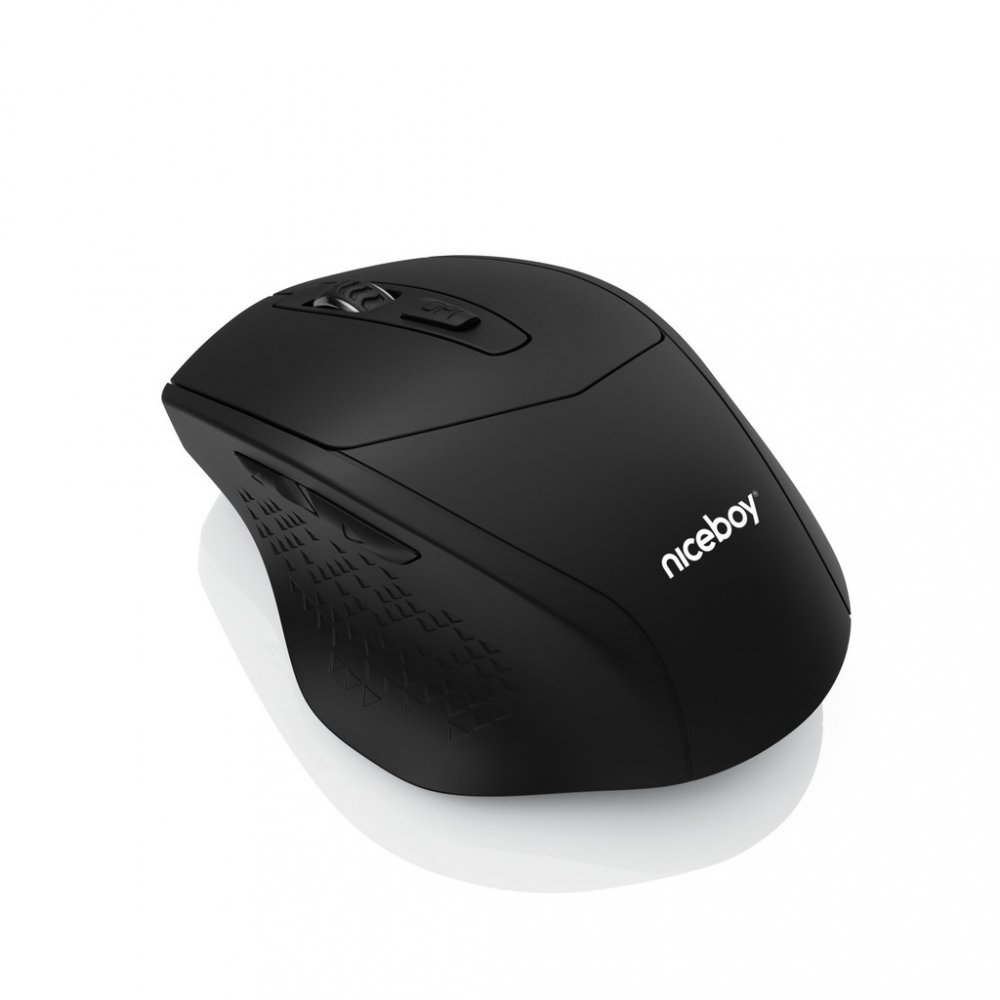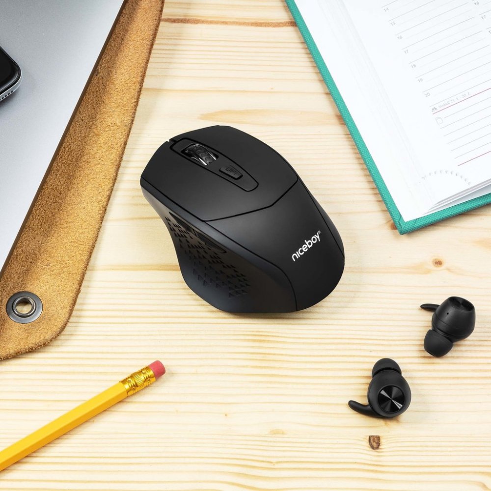 Niceboy M10 je stylová bezdrátová myš pro každodenní využití. Svým tvarem je myš určena pro praváky. S kompaktními rozměry a hmotností pouhých 65 gramů si tuto myš oblíbí všichni uživatelé, kteří pro práci preferují menší myš, ať už pro příjemnější úchop nebo z důvodů, že často s notebookem cestují. S myší Niceboy M10 vás ani při celodenní práci nebude bolet zápěstí. Ergonomický design padne přirozeně do ruky, kterou dále drží v neutrální pozici.