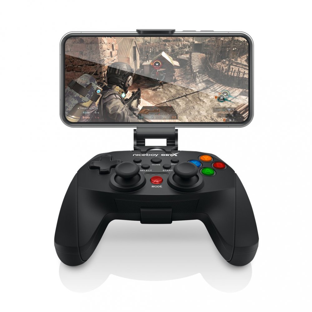Součástí balení Niceboy ORYX GamePad je odnímatelný držák pro mobilní telefony o maximální šířce 8,6 cm. Nastavení je velmi jednoduché, protože pro většinu her není nutná kalibrace, takže po připojení je gamepad okamžitě funkční.