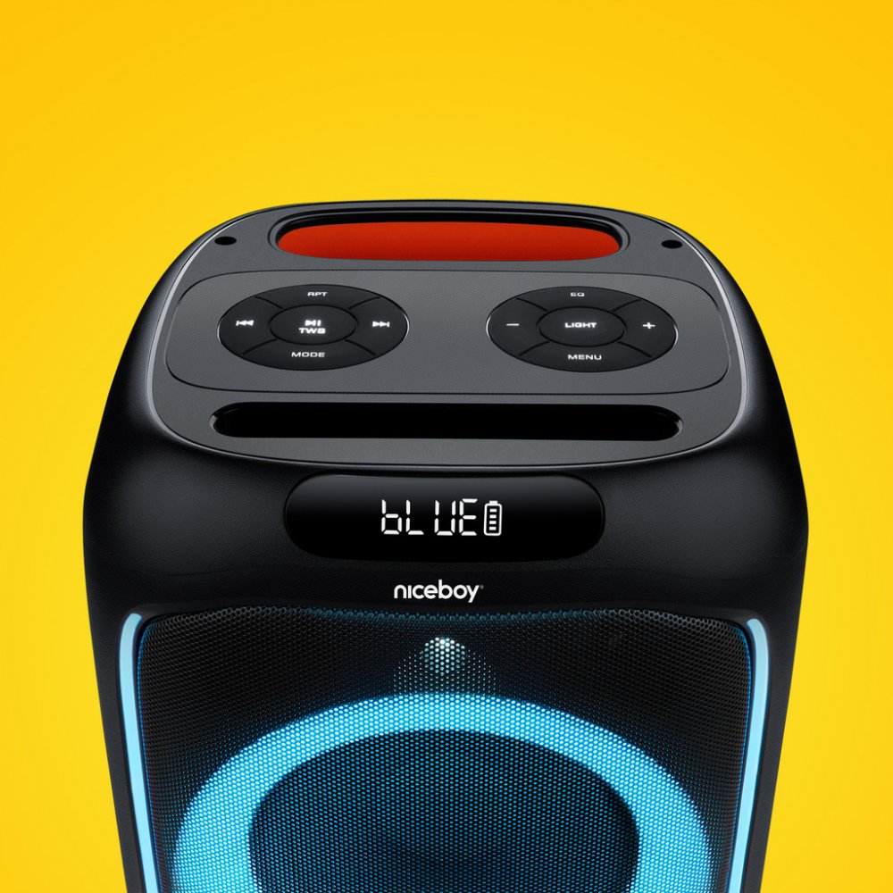 Niceboy PARTY Boom 80W vás překvapí svým kvalitním a hlavně silným zvukem, který byste u tak kompaktního stroje nečekali. I když jde o přenosný party reproduktor, jeho 6,5“ basovy´ reproduktor a 1,5“ vy´sˇkovy´ reproduktor s výkonem 80 W RMS doslova rozjede jakoukoliv akci, ať už jste na pláži, na grilovačce, zkrátka kdekoliv. Díky inovativní technologii MaxxBass si můžete vychutnat ohromující basový a zároveň krystalicky čistý zvuk, kde každá píseň zní plná energie a života.