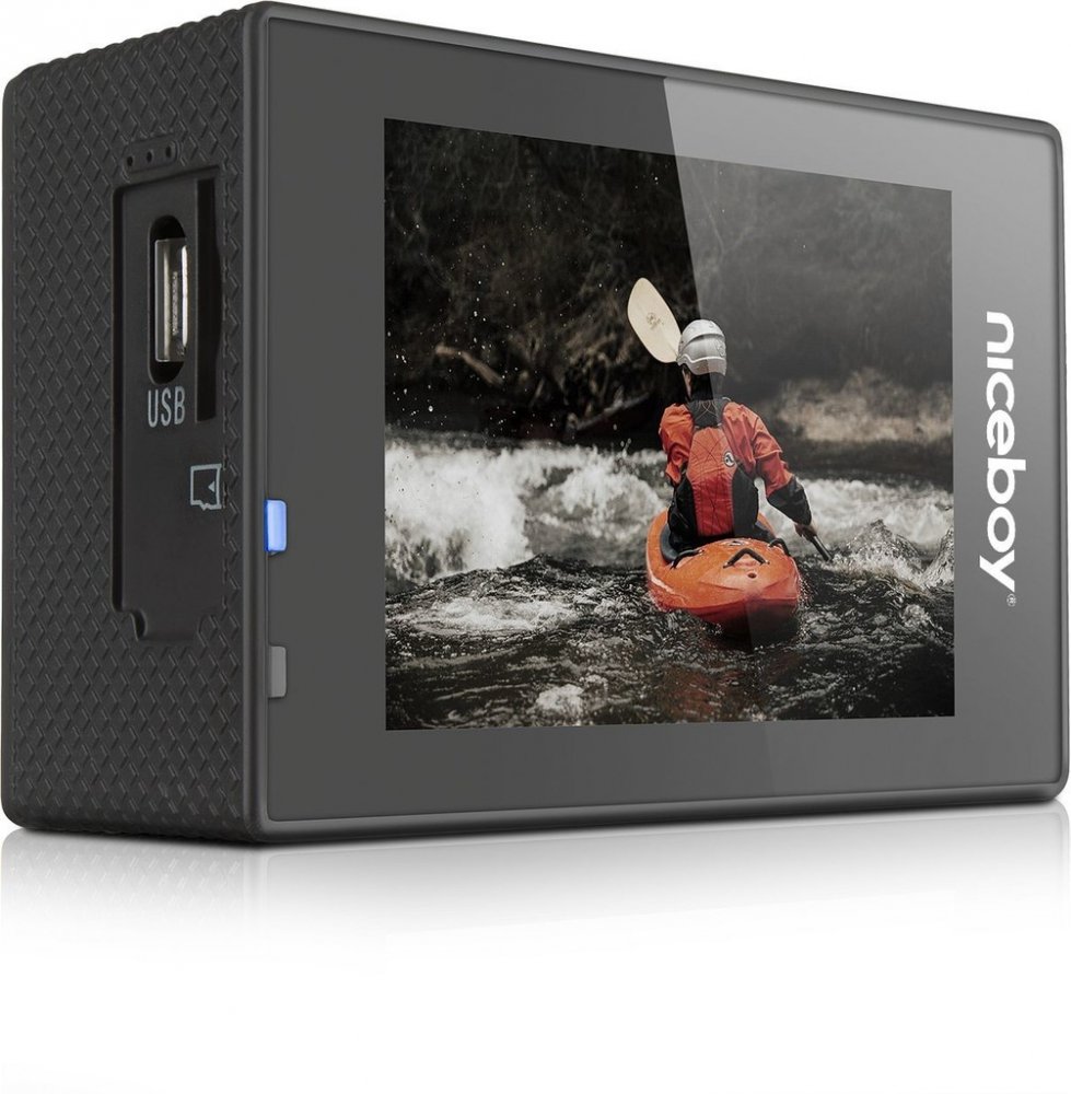 Niceboy pro začátečníky paměťová karta 1920 x 1080 px bez podpory 4K s Full HD (1080p) s klasickým širokoúhlým záběrem 2 se zadním displejem CMOS 16 Mpix elektronická stabilizace (EIS) 41 120 se širokým záběrem (120–155°) 16 Mpix 750 mAh 58 mm 41 mm 29 mm 47 g vodotěsné pouze s pouzdrem