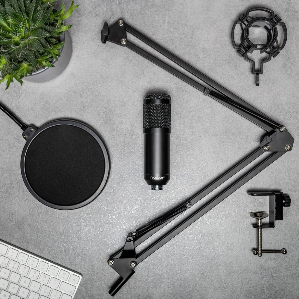 Niceboy VOICE Handle není jen mikrofon, ale rovnou kompletní set pro streamování nebo nahrávání zvuku. Maximální svobodu nastavení dodává otočný stojan s nastavitelným náklonem. Čistotu zvuku zajišťuje kardioidní směrová charakteristika mikrofonu. Pro potlačení nežádoucích vnějších zvuků je mikrofon vybaven odnímatelným pop filtrem, antivibračním držákem a protivětrným krytem pro mikrofon.