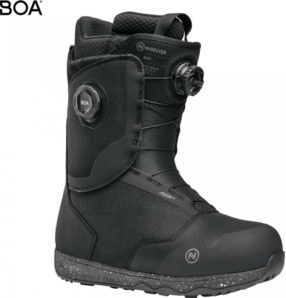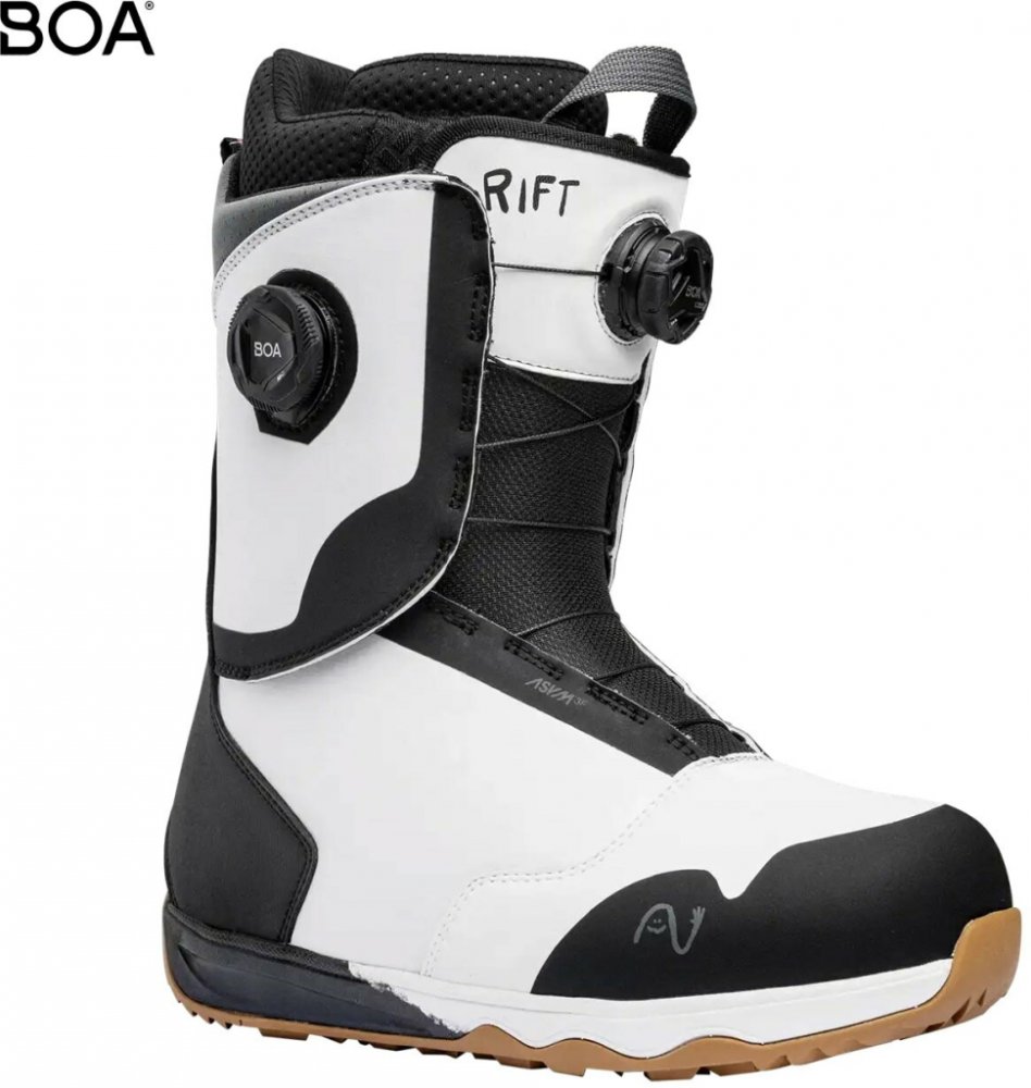 Super lehké all-mountain boty Nidecker Rift se speciálním designem inspirovaným klasickými teniskami, které ti dopřejí parádní flex díky dvoudílnému svršku, což oceníš hlavně ve snowparku. Jednoduchost nazouvání spočívá v utahování pomocí dvou navíjecích BOA koleček, kterými si samostatně nastavíš utáhnutí kolem holeně a kolem nártu.