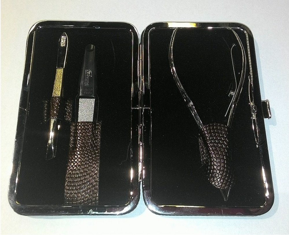 3-dílná dámská luxusní manikúraNerezová ocelPouzdro ze syntetické kůžeSada obsahuje : safírový pilník na nehty, pinzetu, štipky na kůžičku Manikúrové sady svým výrazným vzhledem zaujmou každou ženu, která si cení kvality.