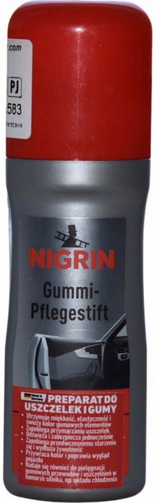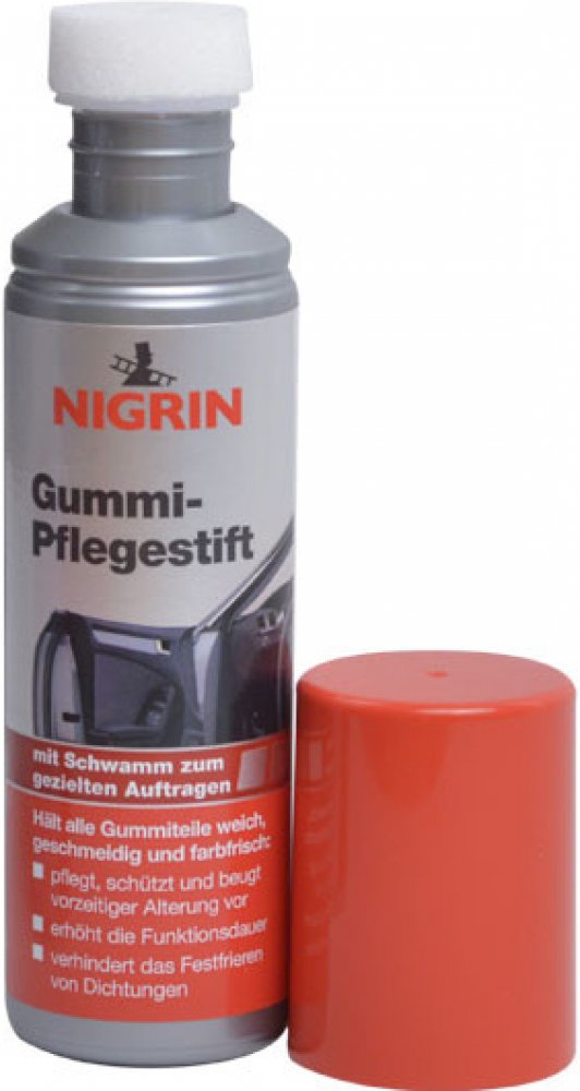 Gumová tyčinka NIGRIN je vhodná pro péči a údržbu všech gumových těsnění, například na dveřích, střešních oknech a zavazadlovém prostoru. Zabraňuje zamrzání gumy. Objem 75 ml. Popis výrobku Pryžová ošetřovací tyčinka NIGRIN zajišťuje delší uchování hodnoty vozidla, protože chrání všechny gumové součásti před předčasným stárnutím. Ideální pro rychlou a efektivní péči. Způsob použití Před použitím obsah balení protřepejte. Odolnou špínu odstraňte nejprve hadříkem. Prostředek naneste na houbičku a očistěte gumové prvky. Upozornění: Není vhodné pro použití na pedálech, volantu, čelních sklech, lištách stěračů a běhounech pneumatik.