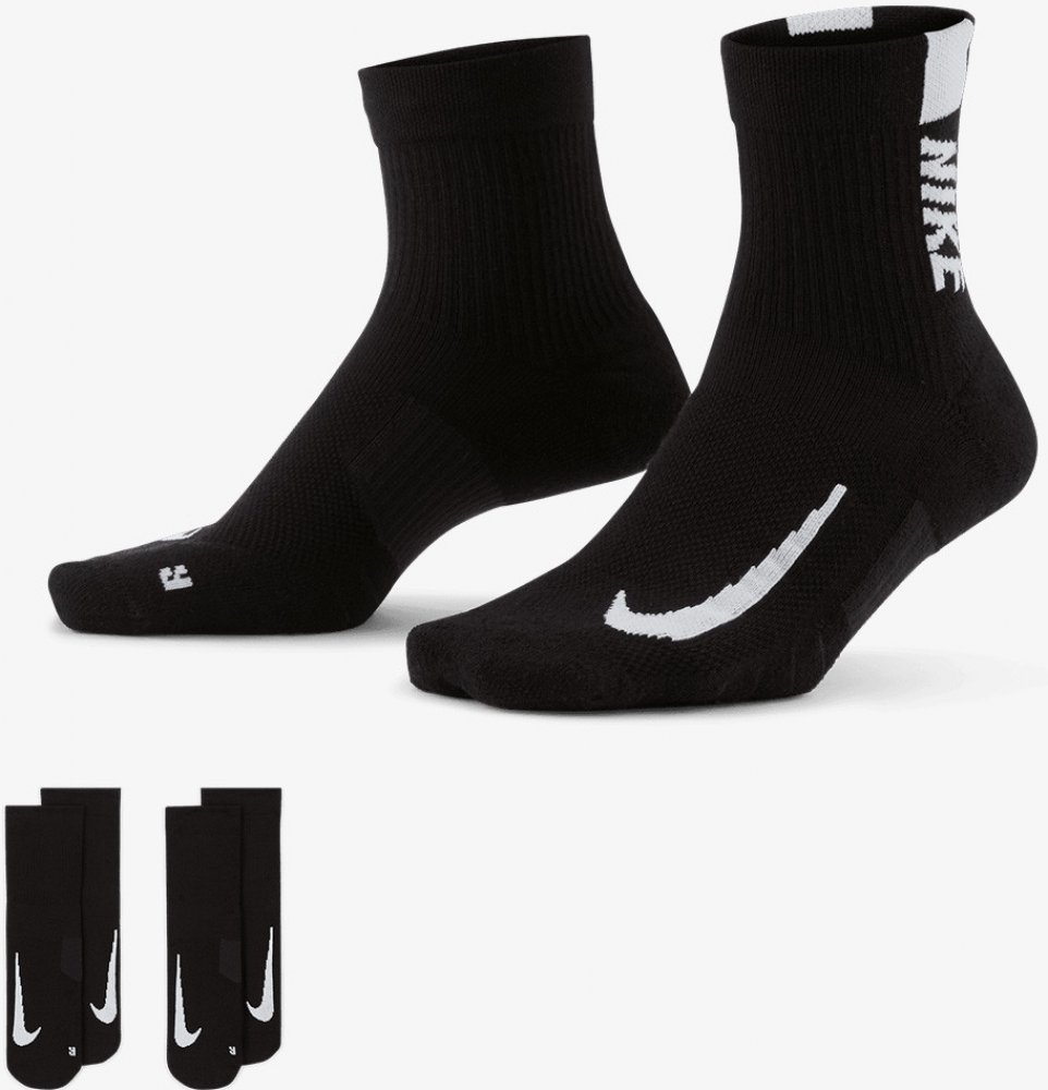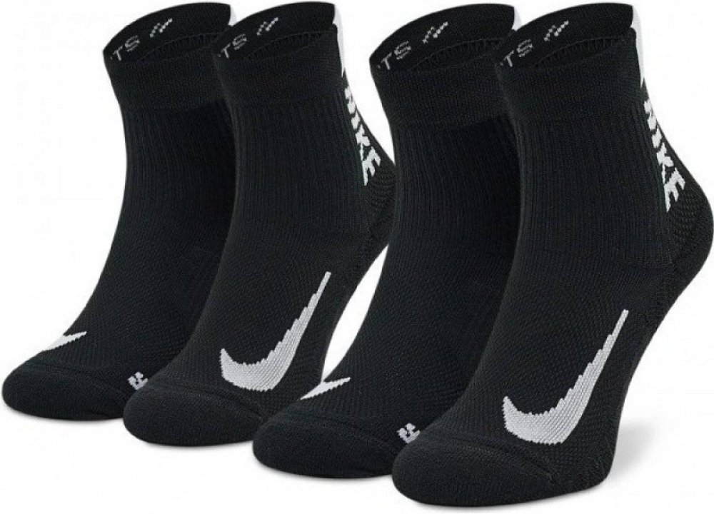 Ponožky značky Nike. Sportovní ponožky jsou vhodné hlavně pro sportování jako je běh nebo cvičení. Mají anatomický tvar a byly vyrobeny z příjemného materiálu, který má rychleschnoucí vlastnosti. Jsou elastické a prodyšné. Černé ponožky mají vyšší střih. Zdobí je logo a nápis Nike po stranách. Značkové ponožky jsou vhodné pro pány i dámy. Díky svému střihu Vám poskytnou p odporu klenby v oblasti metatarzálních kostí. Výsledkem je pohodlné a přiléhavé uchycení, které je ideálně přizpůsobeno různým tréninkovým potřebám. Dodatečné tlumící zóny na podrážce a svršku pomáhají snižovat dopad na chodidlo a snižují riziko zranění. Kotníkové ponožky se stanou skvělým společníkem pro všechny aktivní lidi. V balení se nacházejí dva páry stejných ponožek. Detaily produktu: ponožky Nike vhodné pro muže i ženy anatomický tvar příjemný materiál elastické a prodyšné rychleschnoucí vlastnosti střih vhodný ke sportování podpora klenby logo a nápis Nike vhodné ke cvičení či běh 2 páry v balení