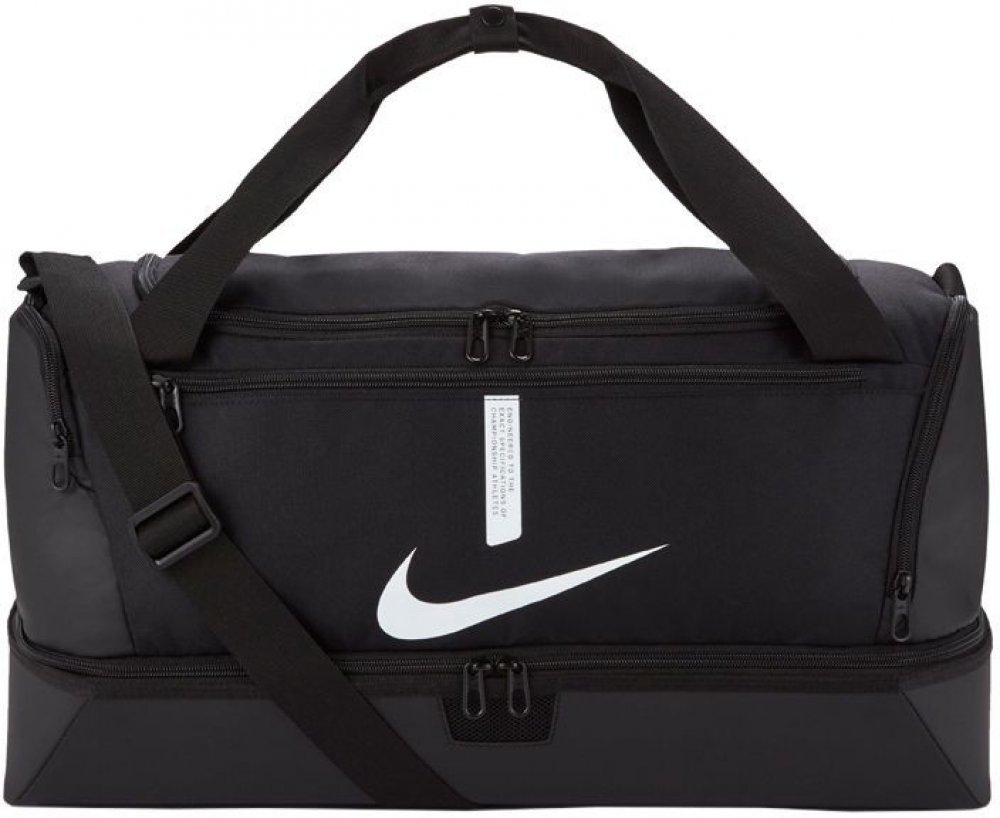 Do sportovní tašky Nike Academy Team Duff M o objemu 37 litrů v černém provedení schováš vše co potřebuješ. Samostatná spodní část oddělí boty nebo špinavé prádlo. Odolný design má voděodolnou úpravu, aby tvoje vybavení zůstalo v suchu.