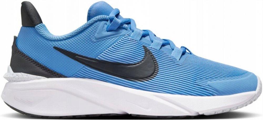 Rychlost, pohodlí a styl pro mladé běžce S modelem Nike Star Runner 4 budou děti připraveny na každé dobrodružství. Měkká pěnová mezipodešev poskytuje pohodlný došlap a flexibilitu, zatímco odolný svršek kombinuje prodyšný textil a odolnou syntetiku. Díky gumové podrážce s výrazným vzorem poskytuje obuv skvělou trakci na různých površích a praktická poutka usnadňují obouvání a zouvání. Výhody Pohodlné odpružení: měkká pěnová mezipodešev pro pohodlí při každém kroku. Odolný svršek: Kombinace textilu a syntetiky pro prodyšnost a odolnost. Jednoduché obouvání: Praktická poutka na jazyku a patě pro rychlé obouvání. Vynikající přilnavost: gumová podrážka s výrazným vzorem přilne na asfaltu, trávě i štěrku. S teniskami Nike Star Runner 4 děti zažijí radost z pohybu – ať už na hřišti, při sportu nebo na procházce! Horní Síťovina. Je tak lehká, že ani nebudete vědět, že ji máte na sobě. A kromě toho vám poskytne potřebnou oporu přesně tam, kde ji potřebujete. Podrážka - guma S gumovou podrážkou se prostě nedá nic pokazit. Dlouho vydrží, snadno se čistí a má skvělou trakci.