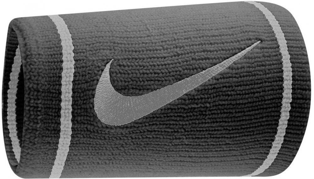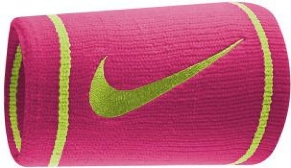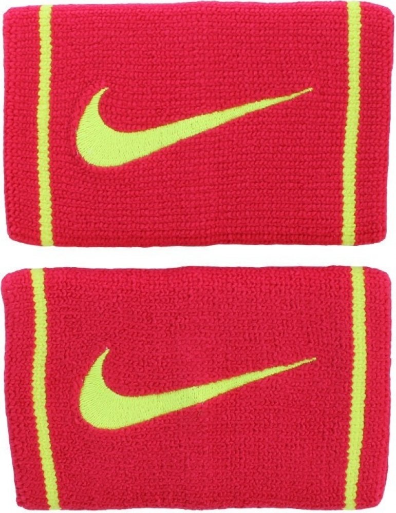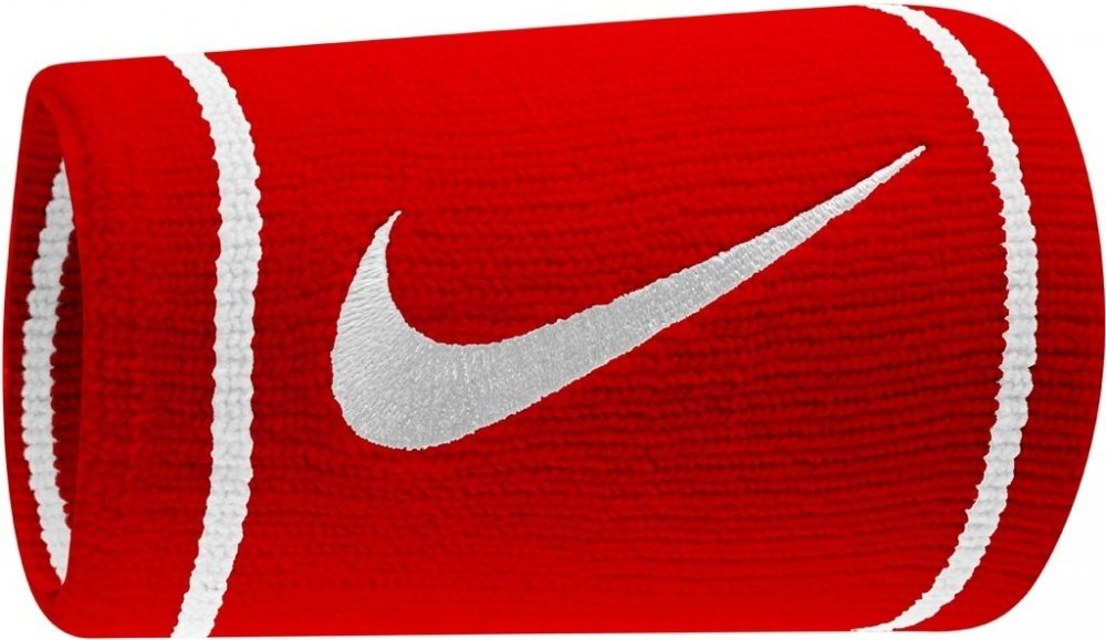 Super absorbující dvojitá potítka NIKE DRi-Fit doublewide červená. Vyšívané logo / Viditelná identifikace značky. Délka potítka 12,7 cm. DRI-FIT materiál, který rychle odvádí pot od těla a dodává tělu větší pocit chlazení a pohodlí.