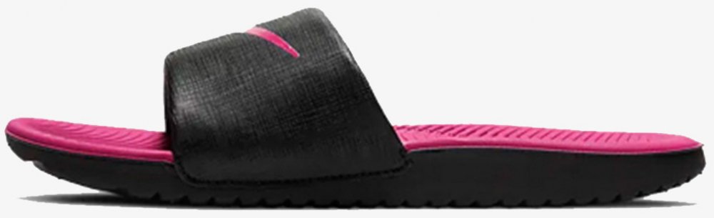 Tyto dětské pantofle Nike Kawa Slide v černo-růžovém provedení jsou navrženy tak, aby poskytly maximální komfort po tréninku nebo během volného času.