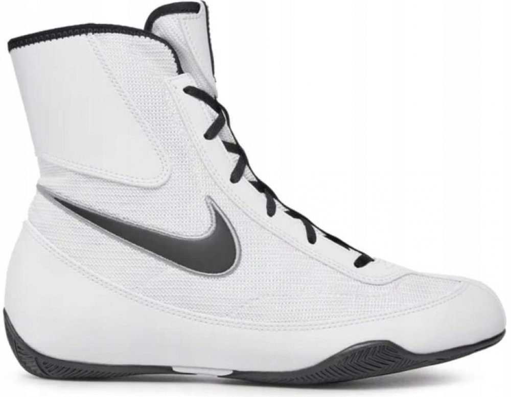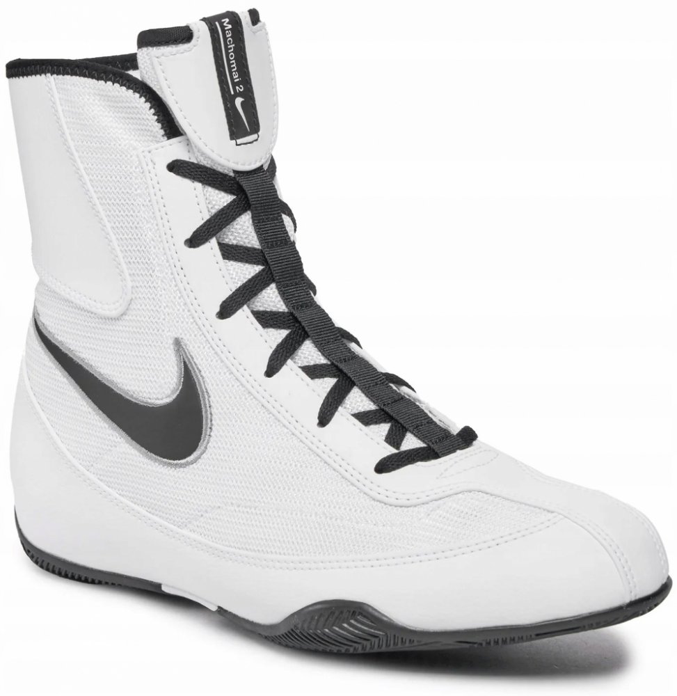 Unisexové boxerské boty Nike Machomai 3 ve velikosti 47,5 (vnitřní délka cca 31 cm) kombinují lehkost a stabilitu, která je nezbytná při dynamických bojových sportech. Bílá textilní svršková část zajišťuje prodyšnost a estetický vzhled a vysoký střih zajišťuje ochranu a podporu kotníku.