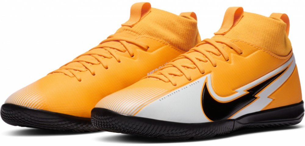 Dětské sálovky Nike Mercurial Superfly 7 Academy IC z kolekce New Lights jsou ideální pro hru ve sportovních halách, mají měkký svršek, který obepíná nohu jako ponožka a gumová podrážka má skvělý záběr. Sálové kopačky jsou vhodné do vnitřních prostor, jako jsou kryté haly nebo tělocvičny. Využít se ale dají například i na venkovní street fotbálek. Mají hladkou podrážku bez výraznějších výstupků.