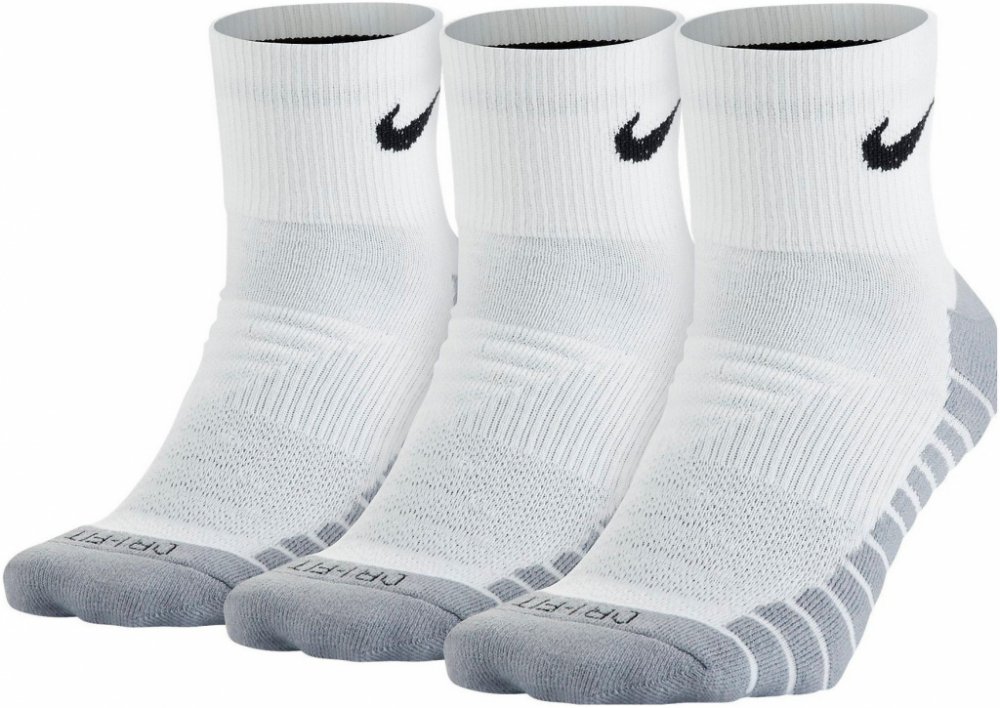 Tréninkové ponožky Nike Dry Cushion Quarter poskytují mimořádnou ochranu při dopadu během tvého tréninku díky strategicky umístěným tlumicím prvkům. Kód sx5549-100 - Velikost M.