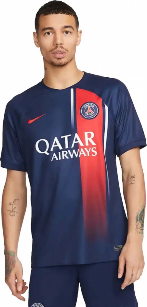 Inspirací pro pánský domácí fotbalový dres Nike PSG 23/24 Stadium v modrém provedení se stalo město světla (La Ville Lumiere). Převážně modrý dres zdobí červený grafický motiv, který postupně bledne do modré a napodobuje způsob, jakým legendární světla Paříže přecházejí v noční oblohu. Hrdost na vnitřní straně podtrhuje název týmu a vnější stranu zdobí francouzská vlajka. Tenhle dres má technologii, která odvádí pot, a vypadá jako dresy, které na hřišti nosí tvůj oblíbený tým, takže bude jasné, za koho kopeš. Výhody: Prodyšný materiál s technologií Nike Dri-FIT odvádí pot od kůže na povrch látky, kde se rychle odpaří. Díky tomu zůstaneš v suchu a pohodlí. Design napodobuje prvky, které nosí profíci na hřišti. Podrobnosti o produktu: 100 % polyester Prát v pračce Dovoz Zobrazená barva: Midnight Navy/University Red/University Red Styl: DX2694-411
