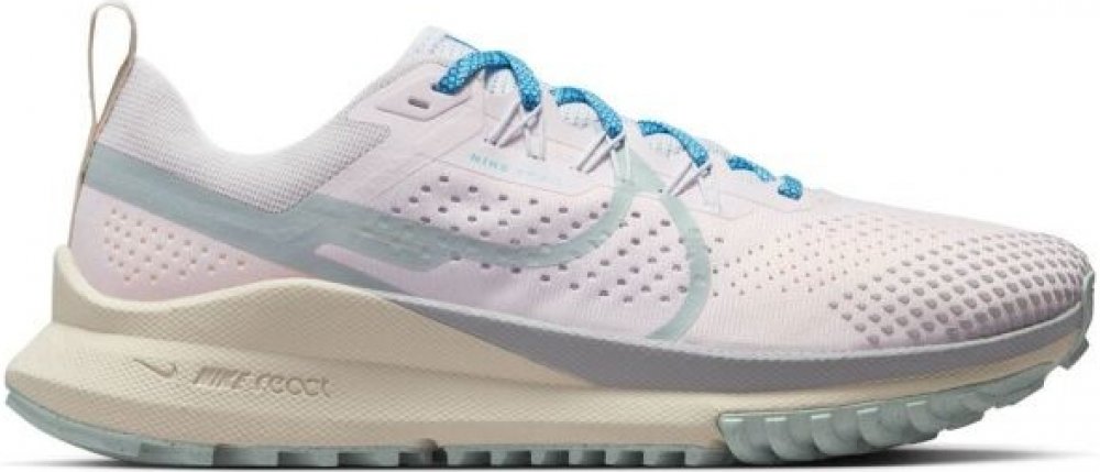 Dámské běžecké boty Nike REACT PEGASUS TRAIL 4 W s prodyšným svrškem se šněrováním na tkaničky určené na pohyb mimo vyšlapanou stezku. Nezastaví je ani silný vítr, ani vydatný déšť. Chránič na lemu brání průniku nečistot do boty. Vylepšená konstrukce Dynamic Fit ve střední části boty pevně obepíná nohu a fixuje ji. Technologie Flywire poskytuje dokonalou oporu díky použití tenkých nylonových vláken strategicky umístěných na svršku boty. Odlehčená pěna Nike React citlivě reaguje na nárazy a poskytuje tlumení. Vzor gumové podrážky se inspiroval vzorkem plášťů jízdních kol a klade důraz na rychlost. Výstupky se starají o hladký pohyb jak v terénu, tak na silnici. Větší trakci na patě a špičce dodá stabilitu, když běžíte do kopce i z kopce.