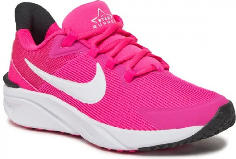 Dívčí obuv značky Nike. Dívčí tenisky v krásné růžové barvě potěší všechny slečny, které chtějí být i během sportování trendy. Růžové tenisky mají svršek z velmi měkké a prodyšné textilie, takže zajistí dostatečnou cirkulaci vzduchu během jakéhokoli tréninku. Dívčí botasky mají měkkou stélku, která se postará o pohodlí při nošení. Sportovní tenisky mají na boku výrazné logo Nike. Značkové botasky se vážou na šňůrky, které výborně fixují chodidlo v botě. Bonusem stylových tenisek je zpevněná špička a pata pro vyšší úroveň odolnosti. Flexibilní podrážka je protiskluzová a má vynikající přilnavost. Růžové botasky jsou perfektními společníky pro různé sporty, trénink, work-out cvičení a aktivně trávený volný čas. Detaily produktu: sportovní botasky Nike měkký a prodyšný svršek zpevněná pata a špička pohodlná stélka vázání na šňůrky polstrovaný límec mezipodešev pro odpružení a tlumení nárazů logo Nike na boku