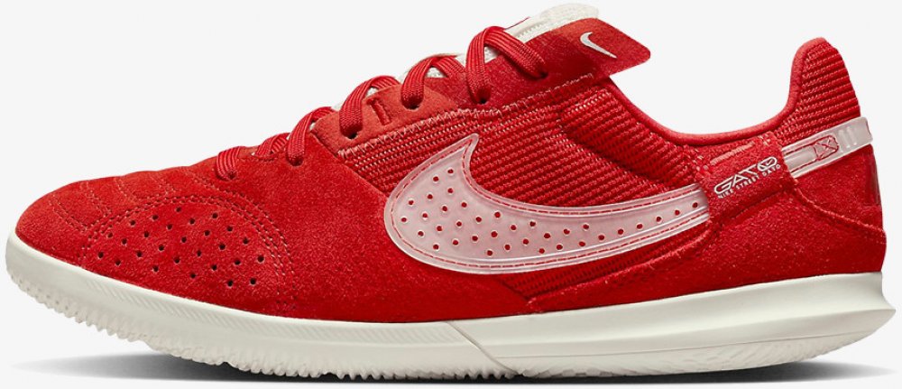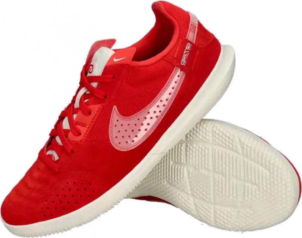 Dětské sálové kopačky Nike Jr. Streetgato v červeném provedení kombinují prvky profesionálního designu a streetový styl. Semiš na svršku vytváří dojem boty na každodenní nošení – ať už se snažíš vypadat ležérně, nebo vyrážíš hrát do ulic. Nový koncept podrážky vyniká nonstop trakcí stvořenou pro malý fotbal. Kopačky typu IC (sálovky) - jsou určeny pro dřevěné a i jiné povrchy vnitřních tělocvičen i hřišť a jsou navrženy tak, aby pomáhaly v pohybu a přilnavosti.