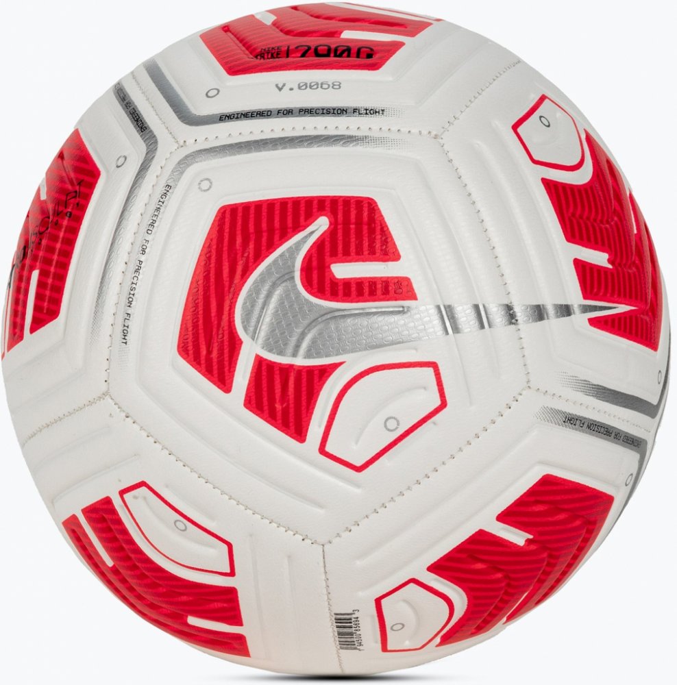 Fotbalový míč Nike Strike Team má duši z lehkých materiálů, které snižují hmotnost míče. Hodí se tak i pro mladé sportovce. Výrazný potisk, aby byl míč na hřišti dobře vidět. Technologie Nike Aerowsculpt využívá tvarované drážky, které pomáhají stabilizovat míč za letu. Vysoce kontrastní motivy usnadňují sledování míče. Strojově prošívaný plášť zlepšuje odolnost. Zesílená gumová duše perfektně drží vzduch a tvar. Velikost míče 5.