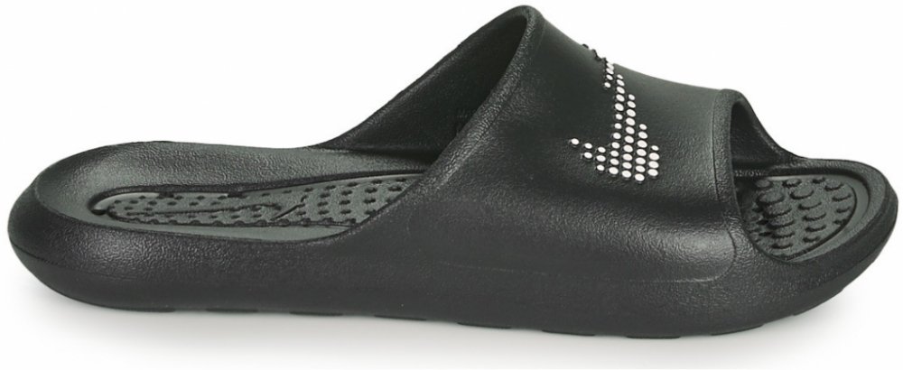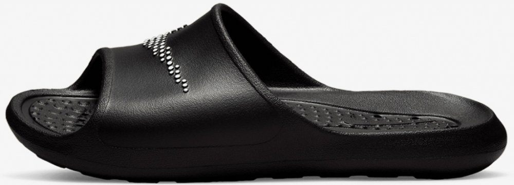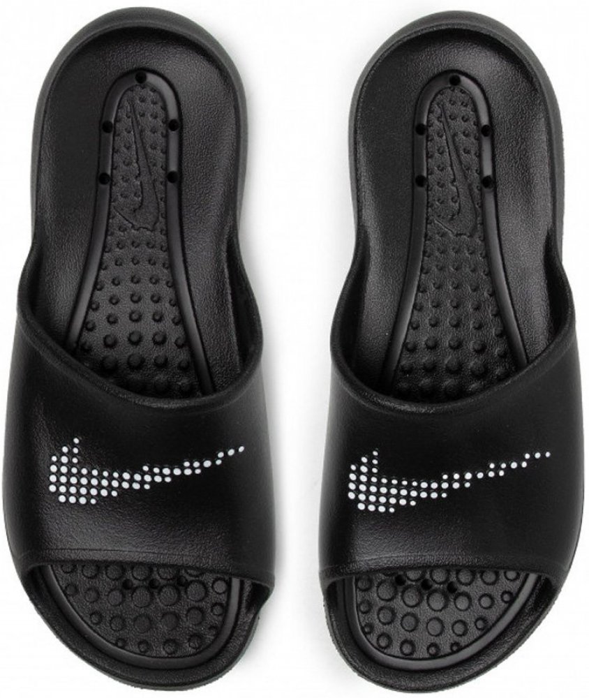 Pánská pantofle do sprchy Nike Victori One v klasickém černém provedení s jednodílnou pěnovou konstrukcí, která je měkká a pohodlná a vzorek na podrážce ti nedovolí uklouznout na mokrém povrchu.