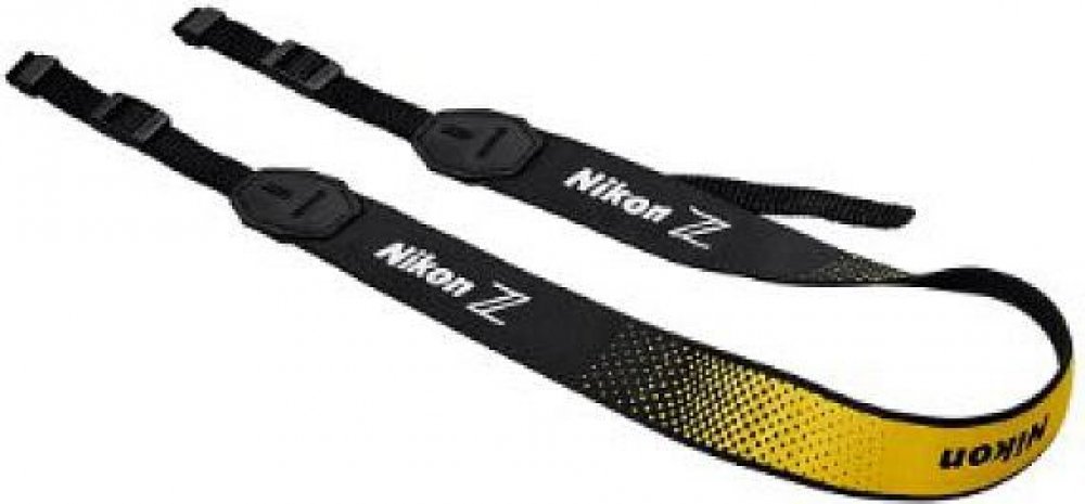 Ramenní popruh pro fotoaparáty Nikon Z vyrobený z tkaniny a obsahující vyšité logo Nikon Z. -
