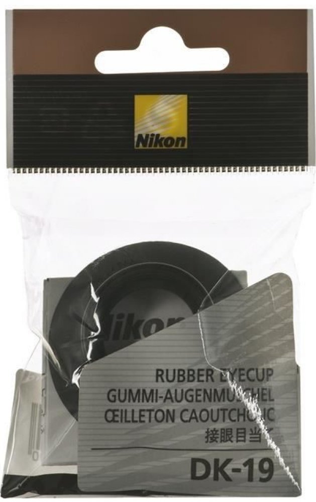 Nikon DK-19 gumová očnice (22mm). Očnice Nikon DK-19 minimalizuje množství postranního světla vnikajícího do hledáčku a zajišťuje komfortnější pozorování obrazu v hledáčku. Je užitečná zejména pro fotografy s brýlemi.