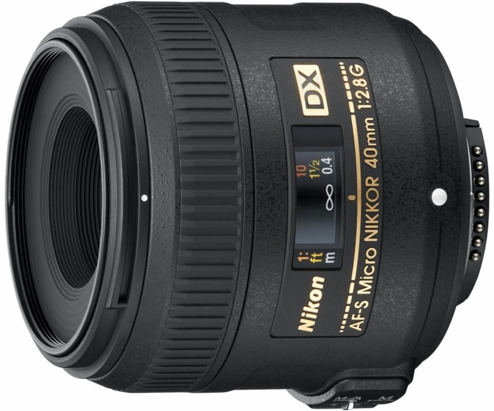 Nikon AF-S DX Micro NIKKOR 40 mm f/2,8G je základní makroobjektiv formátu DX s ohniskovou vzdáleností 40 mm, ekvivalent u kinofilmu a formátu FX: 60 mm. Ultrazvukový zaostřovací motor Nikon SMW. Měřítko zobrazení 1:1. Dva zaostřovací režimy: režim M/A a režim M. Součástí balení je i sluneční clona HB-61. Vysoká světelnost f/2,8 umožňuje zdůraznit fotografovaný objekt na příjemně rozostřeném pozadí...