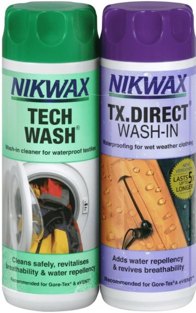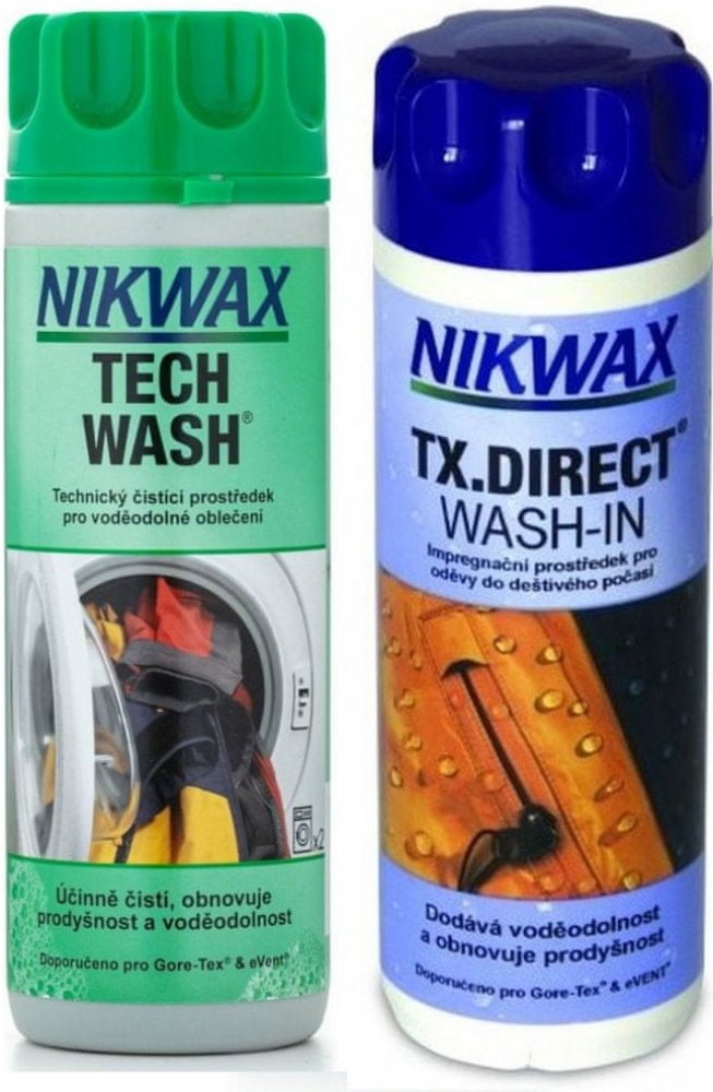 Souprava na čištění a impregnaci Nikwax pro nepromokavé a prodyšné oděvy. Zvláště doporučeno pro turistické, lovecké, rybářské a sportovní oblečení. Dokonale odstraňuje nečistoty a impregnuje a zajišťuje nepromokavé a prodyšné oblečení. Sada obsahuje: Nikwax® TECH WASH 300 ml Nikwax® TX-DIRECT 300 ml Nikwax® TECH WASH 300 ml je snadno použitelné tekuté čisticí mýdlo bez detergentů pro praní oděvů, stanů a batohů. Jemný účinek prostředku důkladně odstraní nečistoty a regeneruje vodotěsné povrchy. Před praním v Tech Wash® odstraňte odolné nečistoty houbou nebo nylonovým kartáčem. Odstraňte všechny věci, které nelze prát. Před použití dobře protřepejte. Postupujte podle pokynů na štítku. Nesmí se používat čisticí prostředky. Návod k použití: Praní v pračce : odstraňte zbytky prášku z dávkovače vložte prádlo do pračky, neperte více než 2 kusy najednou nalijte 2 plná víčka po 100 ml měkkou vodou nebo 3 plná víčka po 150 ml tvrdou vodou postupujte podle pokynů na štítku Ruční praní (použijte gumové rukavice): namočte oděv do teplé vody ve vaně nebo misce nalijte 2 plná víčka po 100 ml měkkou vodou nebo 3 plná víčka po 150 ml tvrdou vodou. opláchněte třikrát ve studené vodě, dokud nebude čirý. Sušení : sušte v zavěšeném stavu nebo v automatické sušičce nastavené na nízkou rychlost podle pokynů na štítku.