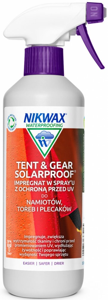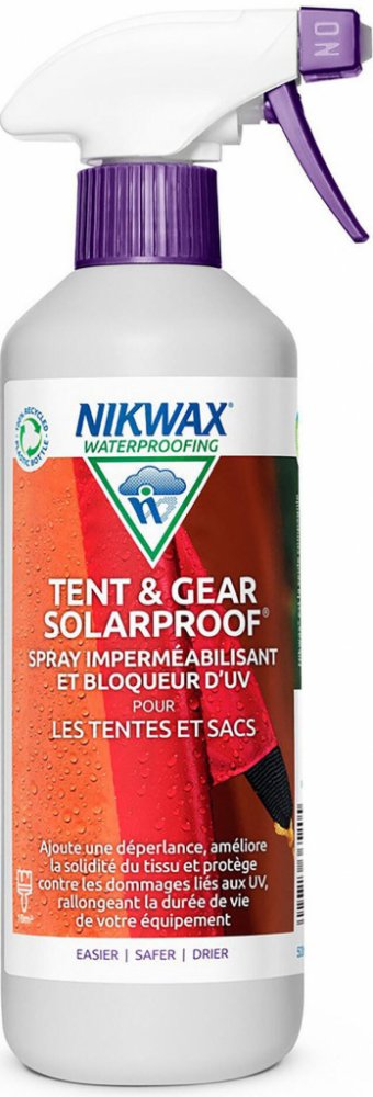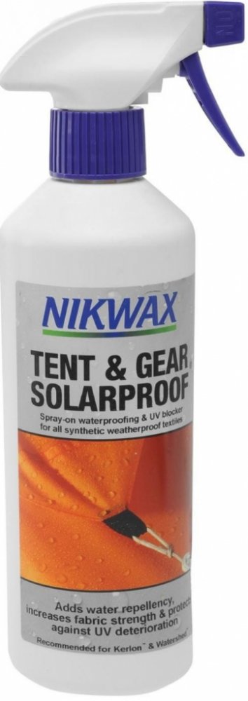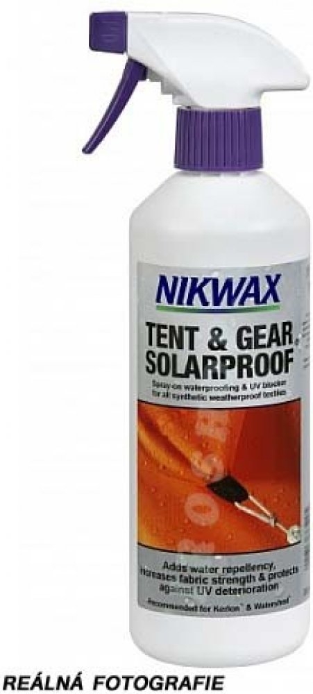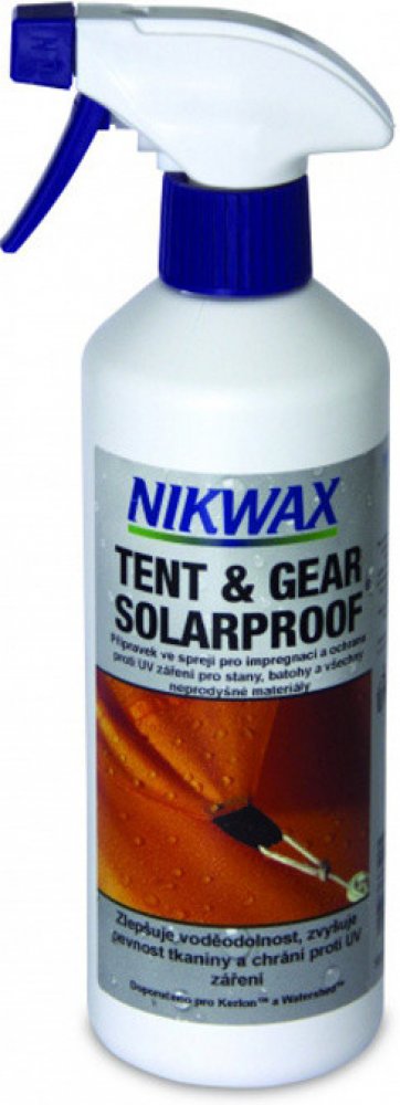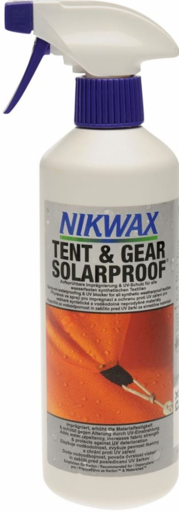 1. Postavený stan omyjte čistou vodou.2. Rovnoměrně nastříkejte na vnější stranu tkaniny.3. Počkejte 2 minuty. Vlhkou utěrkou setřete přebytečný nástřik.4. Důkladně zkontrolujte, zda byly nastříkány všechny plochy.Sušení:Předměty by se měly nechat vyschnout na vzduchu (po několika minutách vlhkou utěrkou setřete případný přebytečný nástřik). Před zabalením nechte předměty zcela vyschnout.Tento produkt vždy používejte na nové nebo použité stany a vybavení, aby byly perfektně voděodolné a chráněny proti poškození UV zářením. Nezapomeňte před aplikací přípravku Nikwax SolarProof® stany a vybavení nejprve omýt čistou vodou.