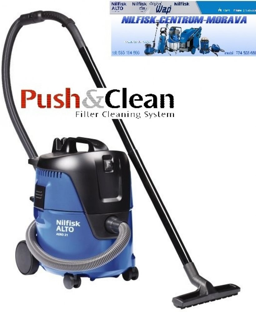 AERO jsou kompaktní, lehké a robustní mokro-suché vysavače, které je možno snadno přenášet, případně transportovat např. autem. Po skončení práce jde kontejner lehce vyprázdnit – buď vyhozením standardního fleecového filtračního sáčku, nebo vysypáním nádoby. Push&Clean systém čištění filtru zamezuje ztrátě výkonu a zvyšuje produktivitu čištění. Odkládání příslušenství a skladování vysavače je jednoduché díky několika možnostem uložení hadice, hubice a kabelu.