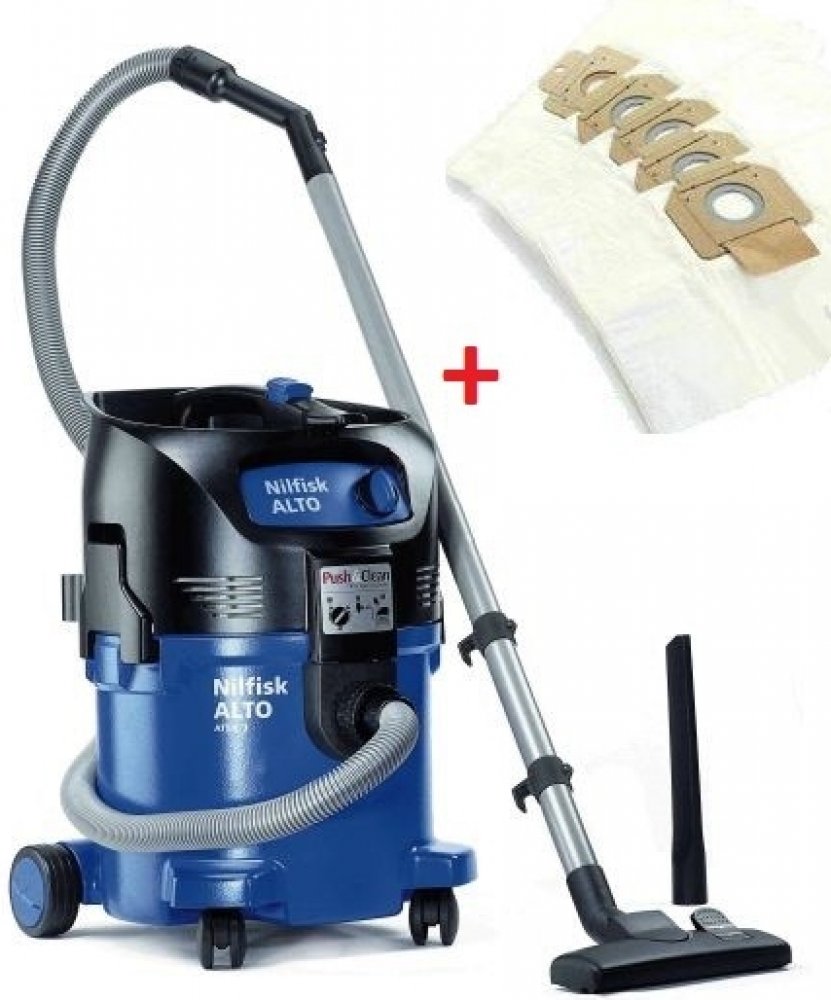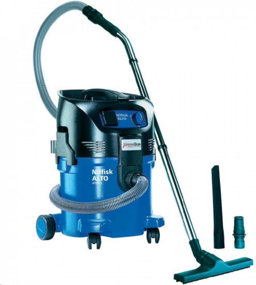 NILFISK-ALTO ATTIX 30-01 je lehký průmyslový vysavač, který je ideální zejména pro řemeslníky. Vyznačuje se malými rozměry, optimálním sacím výkonem a vynikající filtrací. S vysavači řady ATTIX 30 lze vysávat jak suché tak i mokré nečistoty. ATTIX 30-01 má účinný lamelový filtr . Tento systém umožňuje oklepávat filtr za chodu.