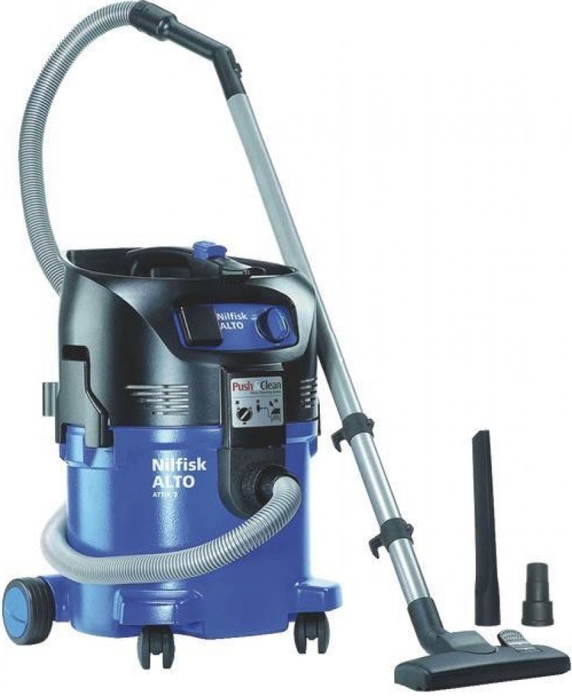 ATTIX 30 je lehký průmyslový vysavač, který je ideální zejména pro řemeslníky. Vyznačuje se malými rozměry, optimálním sacím výkonem a vynikající filtrací. S vysavači řady ATTIX 30 lze vysávat jak suché tak i mokré nečistoty.Nilfisk-ALTO ATTIX 30 má účinný lamelový filtr s mechanickým oklepem Push&Clean. Tento systém umožňuje oklepávat filtr za chodu.