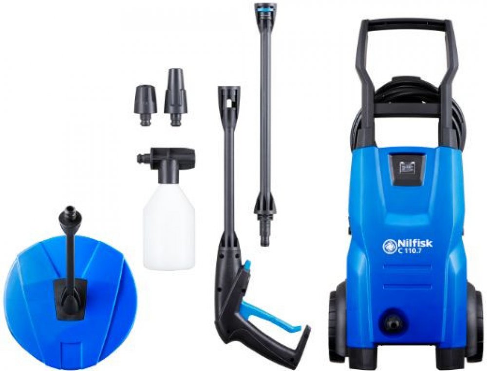 Nilfisk C 110.7-5 PC X-TRA Tento lehký, kompaktní a snadno ovladatelný vysokotlaký čistič Nilfisk je ideální pro základní úklidové práce v zahradě.