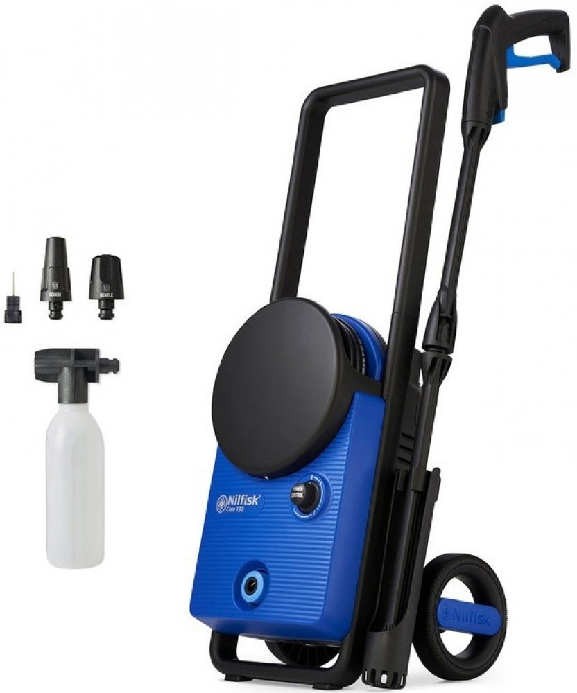Výkonný a jednoduše ovladatelný vysokotlaký čistič pro základní použití. Nilfisk Core 130-6 PowerControl je vysokotlaký čistič s tlakem 130 bar, kapsou na uložení hadice, podvozkem a regulací výkonu na stroji. Kovové čerpadlo s dlouhou životností zajišťují dostatečnou sílu k čištění všeho od jemných povrchů po opravdu ulpělé nečistoty. S extra flexibilní hadicí o délce 6m je používání snadné a unikátní kapsa na hadici zajišťuje jednoduché uložení. Nilfisk nabízí systém Click & Clean pro připojení řady volitelného příslušenství pro rozšíření možností využití Vašeho vysokotlakého čističe. Technické parametry: Typ trysky: nastavitelná proudová tryska, fréza na nečistoty, pěnová tryska Tlak čerpadla (bar/MPa): 130/13 Příkon motoru: 1,5 kW Max. průtok: 462 l/h Délka hadice: 6 m Max. vstupní teplota: 40 °C Napětí: 220-240 V Délka kabelu: 5 m Rozměr (d x š x v) 300 x 290 x 717 mm Hmotnost: 6,6 kg