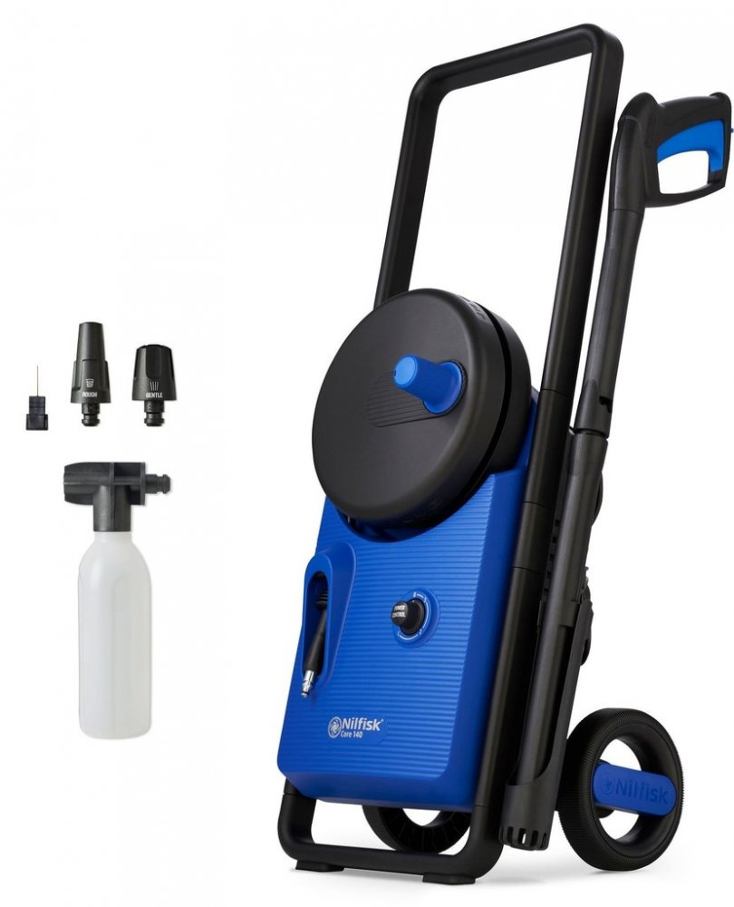 Vysokotlaký čistič Core 140 značky Nilfisk zaujme svým minimalistickým vzhledem, ale především vyniká dostatečnou intenzitou pro odstranění i silných nečistot. Systém Click & Clean se postará o snadnou výměnu nástavců, a tím umožňuje rychlé upnutí vhodné trysky dle druhu znečištění. Kromě toho je vysokotlaký čistič Core 140 navíc vybaven automatickým systémem Start/Stop s vysokou spolehlivostí. Hadice přístroje se díky rychlospojce nekroutí a lze ji jednoduše navinout na přední kryt. Výkonný motor s maximálním tlakem 140 baru znatelně urychluje práci, a tak je tento čistič skvělou volbou pro dokonalý úklid.