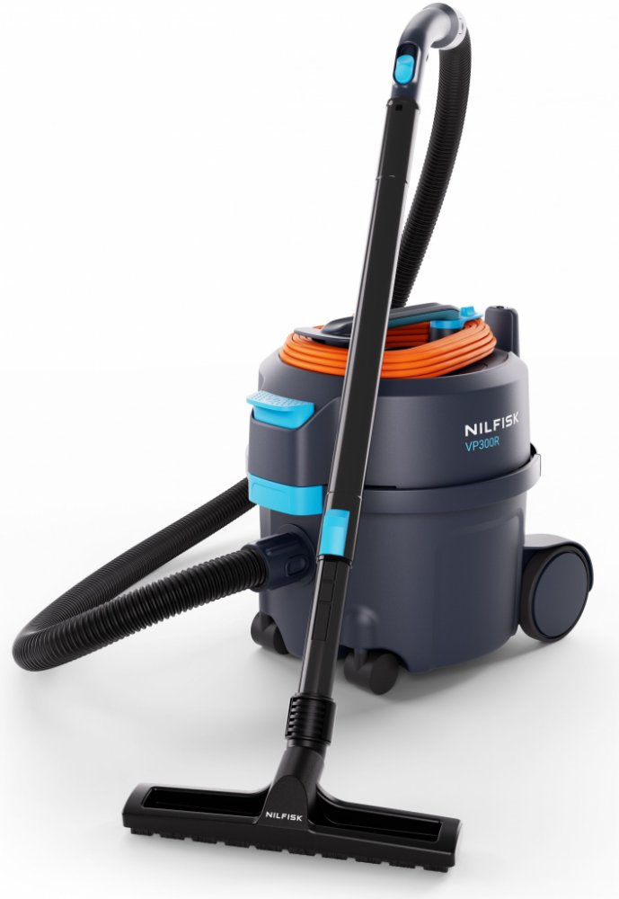 Profesionální vysavač na suché nečistoty. Příkon 700 W. 10 m odnímatelný kabel. HEPA filtr H13 ve standardní výbavě. Ideální komerční sáčkový vysavač pro úklid kanceláří, hotelových pokojů, ubytoven, obchodů apod. Vzhledem k nízké hlučnosti je vhodný i pro práci za provozu. Je určený pro vysávání suchých nečistot. Hlavní přednosti modelové řady VP300: Regulace sací síly přímo na rukojeti 10litrový sáček prodlužující interval mezi výměnami 10 m kabelu a 2,5 m hadice pro velký pracovní dosah Integrovaný prostor pro uložení příslušenství na těle vysavače Snadné nasazení a čištění filtračního vaku i HEPA filtru Praktická nárazová guma chránící okolní vybavení před poškozením Nízká hmotnost pro snadnou manipulaci a přenášení Parkovací poloha trubice Prostor pro uložení příslušenství Spolehlivý zámek nádoby Barevně zvýrazněné dotykové body pro intuitivní ovládání (spínač/vypínač, pojistka na uvolnění kabelu, regulace sací síly na kolínku, zámek nádoby) Beznástrojová údržba – rychlý přístup k sáčkům a filtrům Pohodlný nožní vypínač Oranžový elektrický kabel pro větší bezpečnost při práci Možnost uložení a navinutí kabelu na víku vysavače; otočením pojistky lze kabel rychle uvolnit Odnímatelný kabel umožňující snadnou výměnu při poškození Ekologický aspekt: Modely VP300 a 400 R jsou z 38% vyrobené z udržitelného PCR plastu (Post-Consumer Recycled Plastics), tzn. z recyklovaného plastu pocházejícího ze spotřebitelského odpadu, který představuje významnou ekologickou zátěž. Upřednostnění PCR plastu před PIR plastem (Post-Industrial Recycled Plastics) přispívá k šetrnějšímu přístupu k životnímu prostředí.